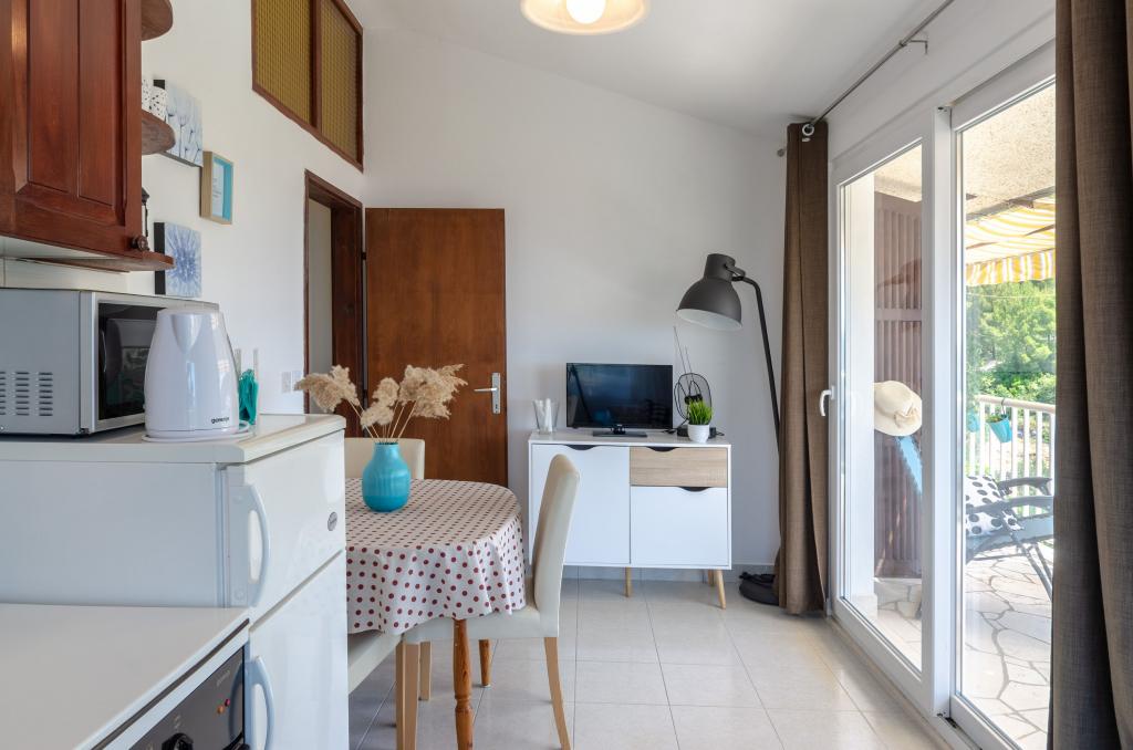 Lakás tiszta és rendezett terasszal ahonnan csodálatos kilátás nyílik a tengerre. A tulajdonosok nagyon barátságos, és próbálja, hogy vendégei otthonosan érezzék magukat. A strand tiszta, karbantartott, alkalmas a gyermekek számára. A tenger tiszta és tiszta, gyönyörű türkizkék. Javasoljuk, hogy bárki, aki szeretne egy szép és csendes pihenésre.