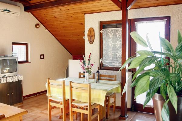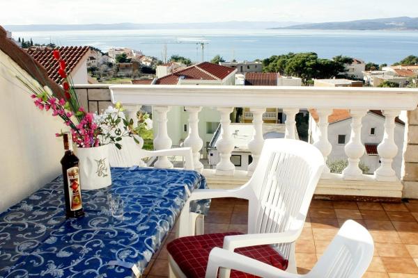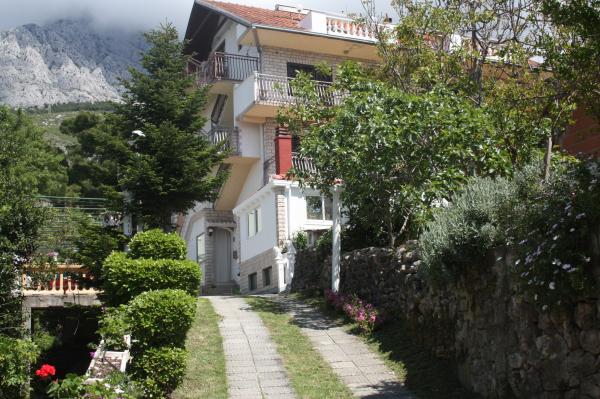 Két hálószobás apartman négy vagy öt ember számára, teljesen berendezett és felszerelt. Két hálószoba mindegyikben 2 ágy található, és pótágyazható. Konyha, étkező, nappali, fürdőszoba, terasz, ahonnan gyönyörű kilátás nyílik a tengerre és a Biokovo hegyre. A lakás a harmadik emeleten található. A ház előtt kert és grillezési lehetőség áll a vendégek rendelkezésére. A létesítmény rövid sétára található a strandtól és Promajna központjától. Az összes szükséges létesítmény a közvetlen közelében található.