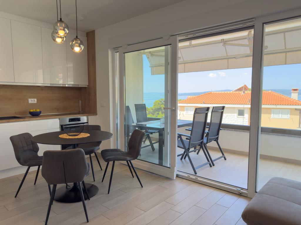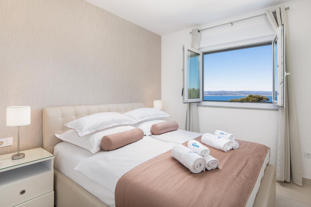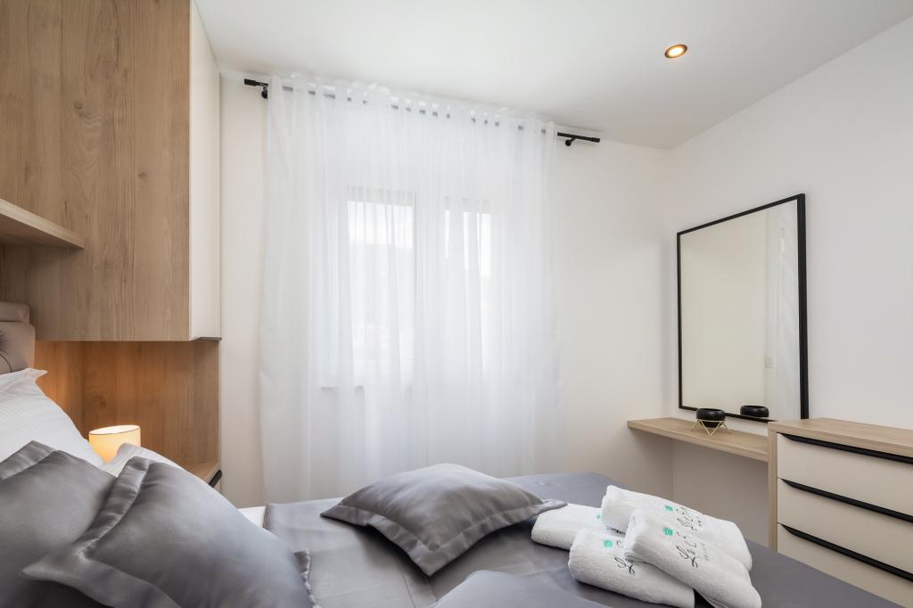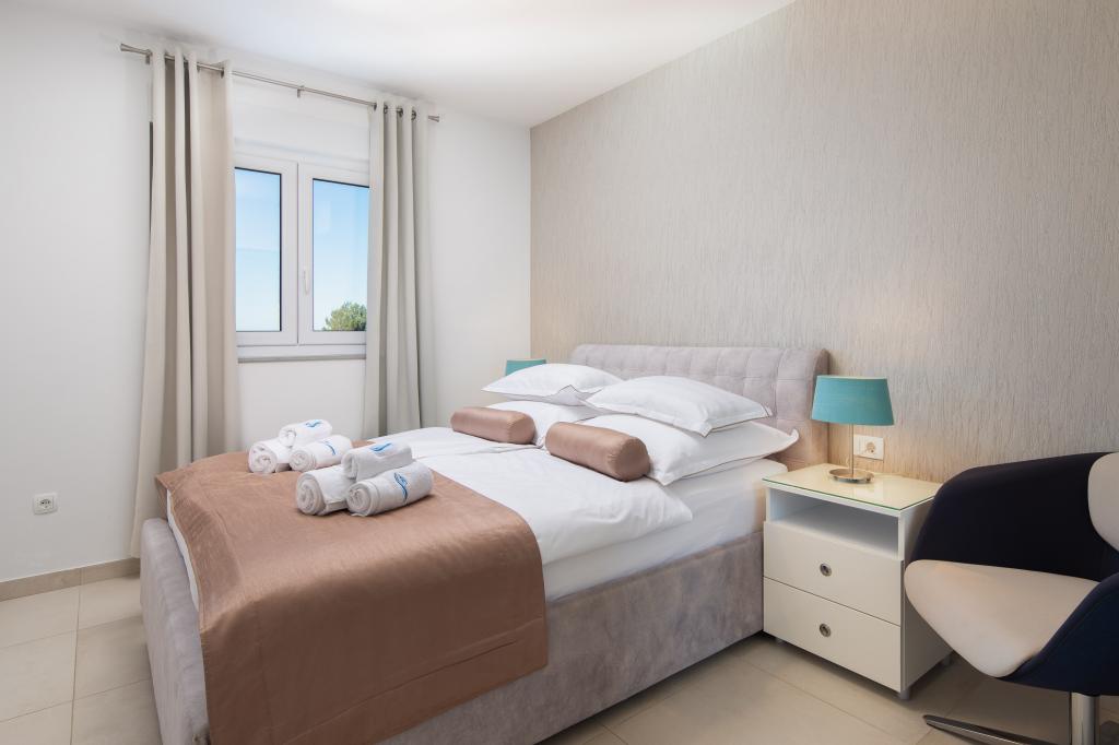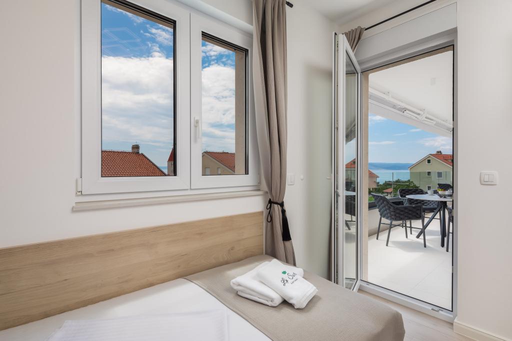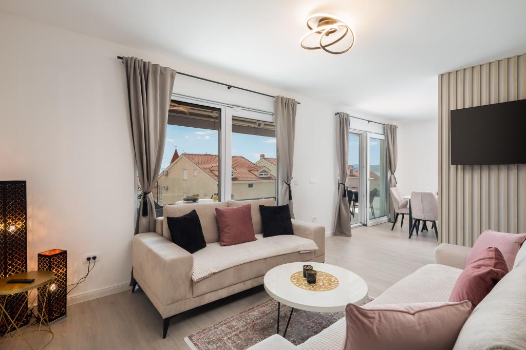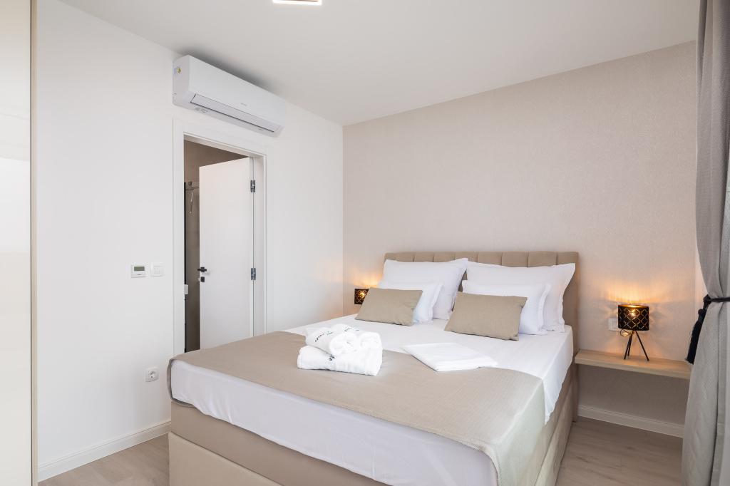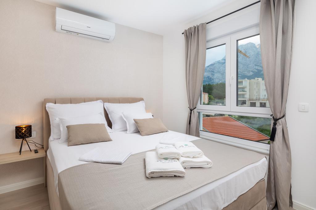 **** VÉGSŐ SZEZONÁLIS AJÁNLAT - 10% kedvezmény minden feltüntetett árból a betöltetlen időpontokra. **** Luxus apartmanokat kínálunk Promajnában. Minden apartman kényelmes hálószobával rendelkezik, okostévével. Minden apartmanhoz saját parkoló tartozik (a földszinti apartmanhoz 2 parkolóhely tartozik). Az apartman kiváló minőségű bútorokkal és gépekkel van felszerelve. A földszinti apartmanhoz elektronikus napellenző és egy további kültéri zuhanyzó tartozik.