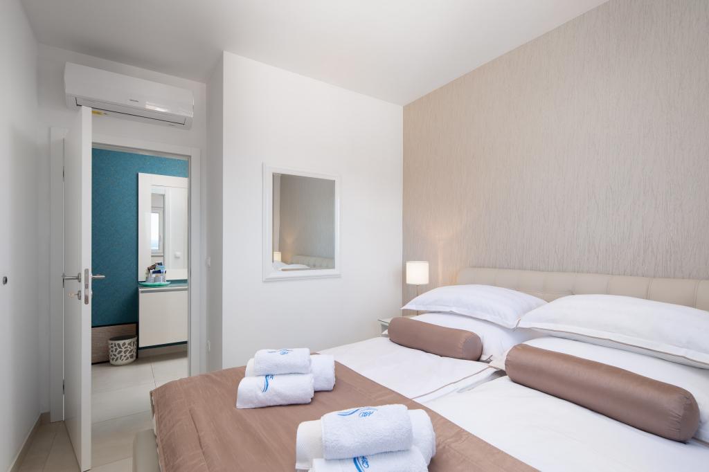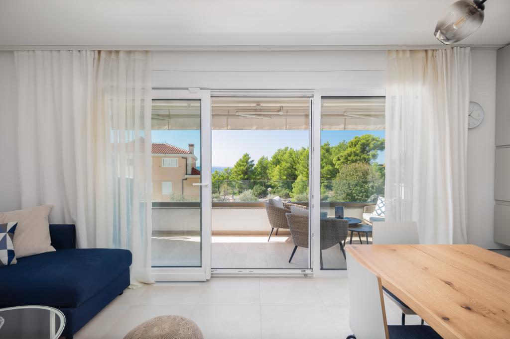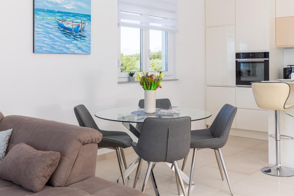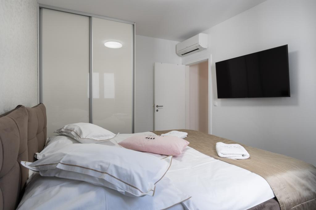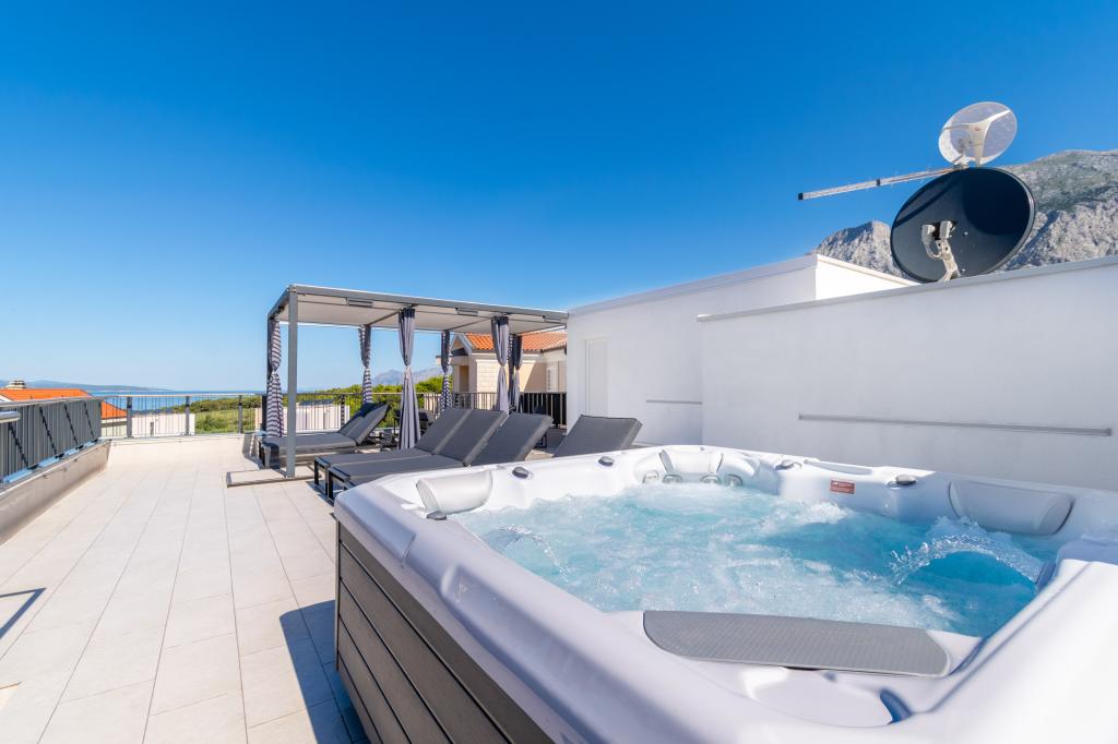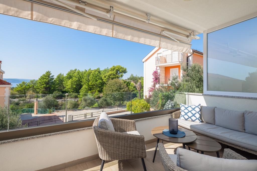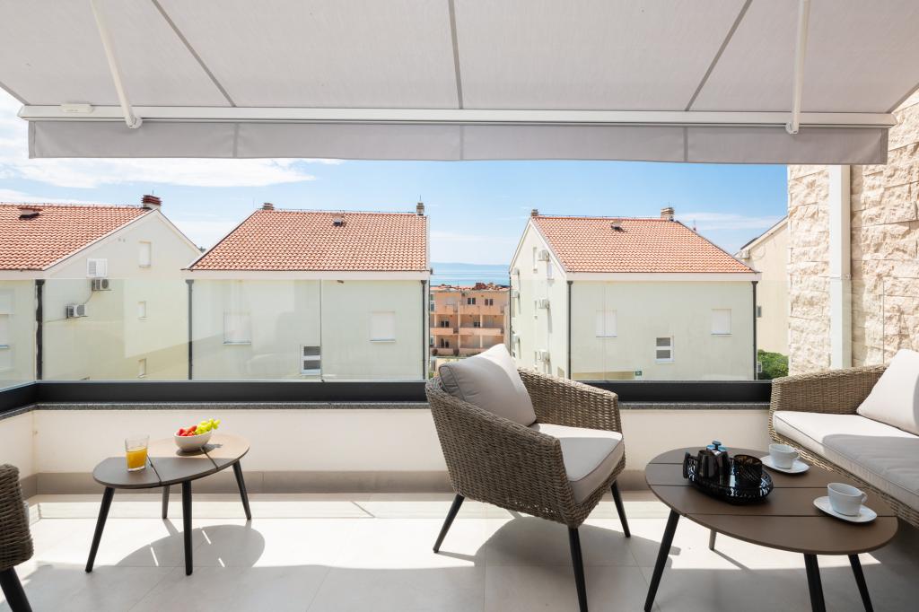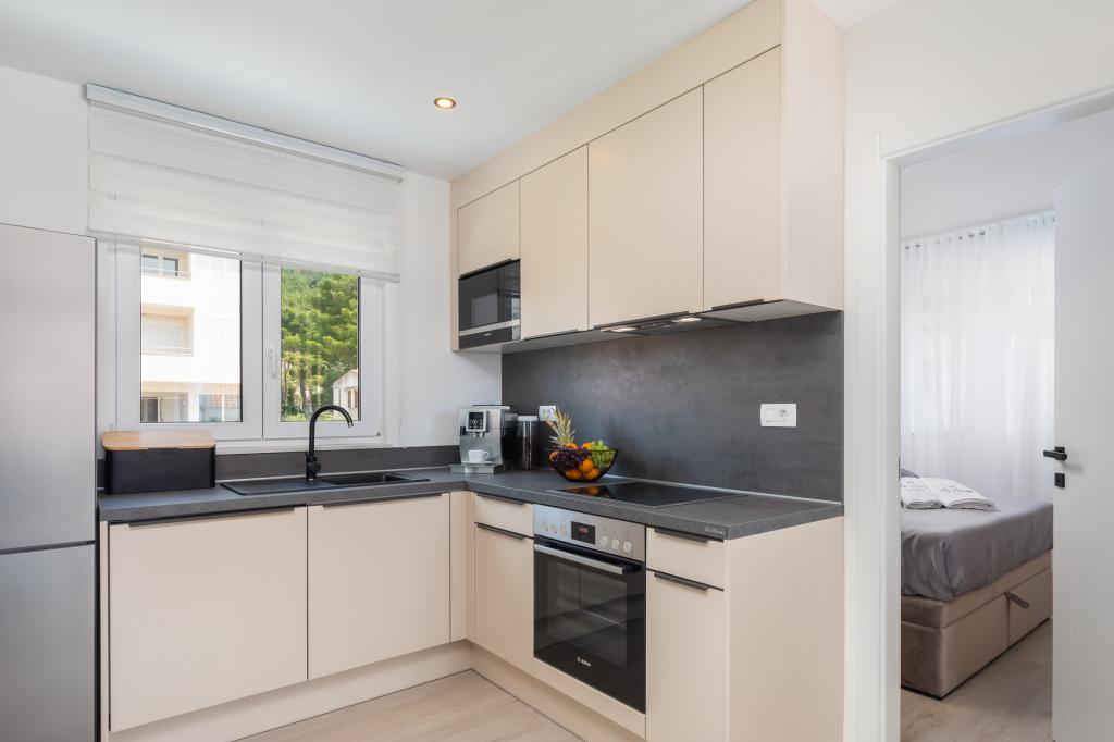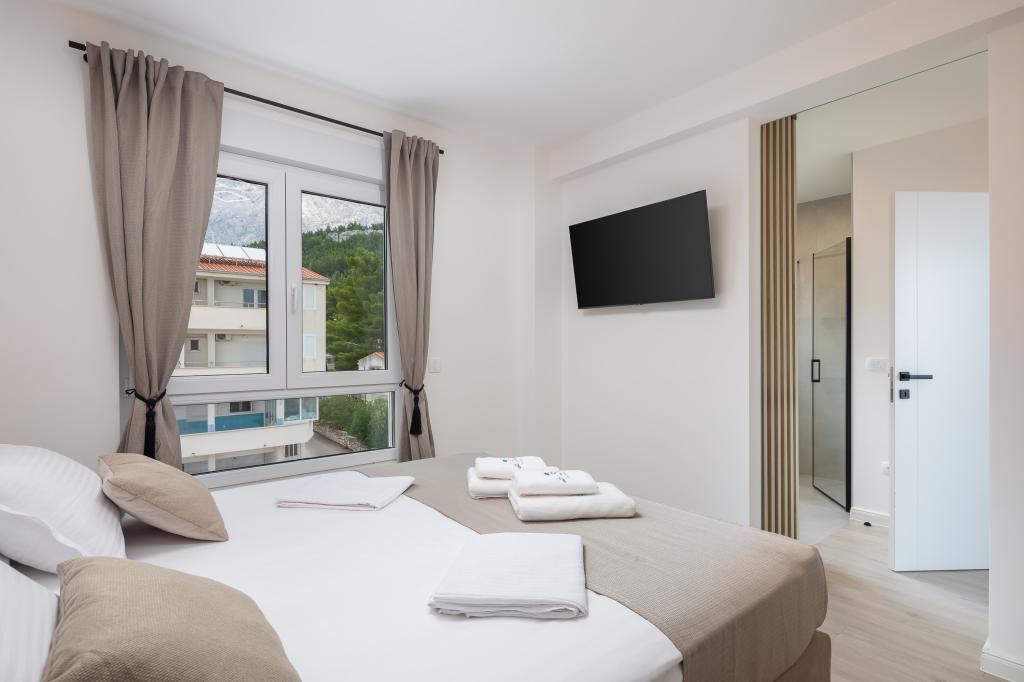 **** VÉGSŐ SZEZONÁLIS AJÁNLAT - 10% kedvezmény minden feltüntetett árból a betöltetlen időpontokra. **** Luxus apartmanokat kínálunk Promajnában. Minden apartman kényelmes hálószobával rendelkezik, okostévével. Minden apartmanhoz saját parkoló tartozik (a földszinti apartmanhoz 2 parkolóhely tartozik). Az apartman kiváló minőségű bútorokkal és gépekkel van felszerelve. A földszinti apartmanhoz elektronikus napellenző és egy további kültéri zuhanyzó tartozik.
