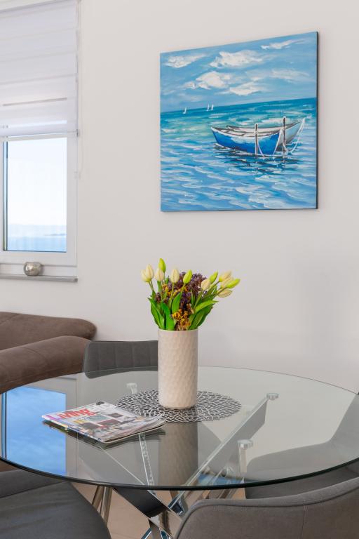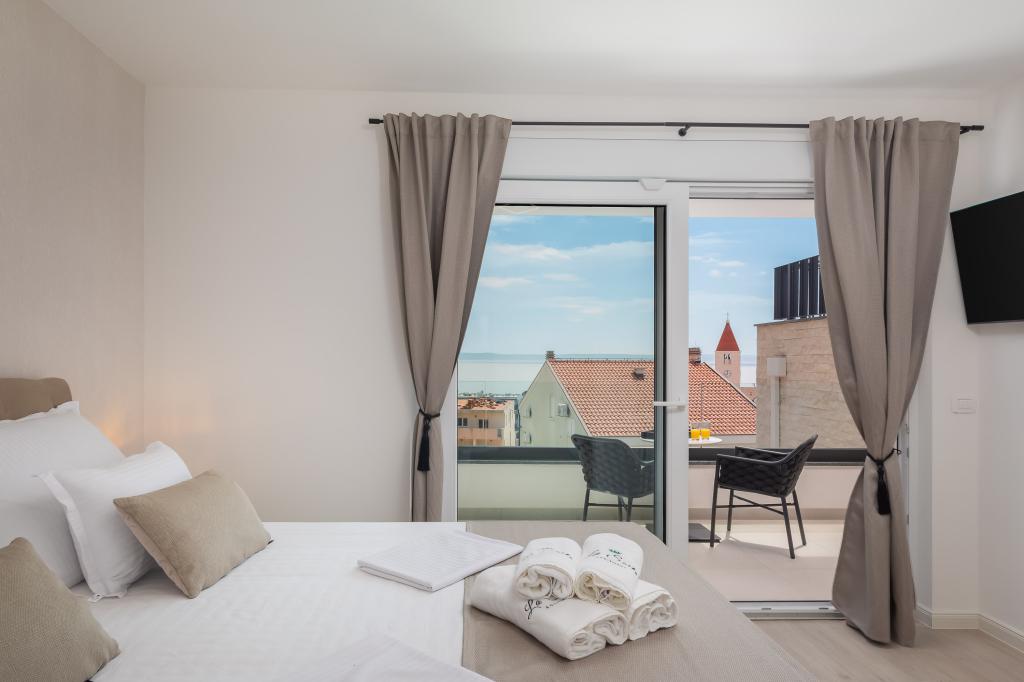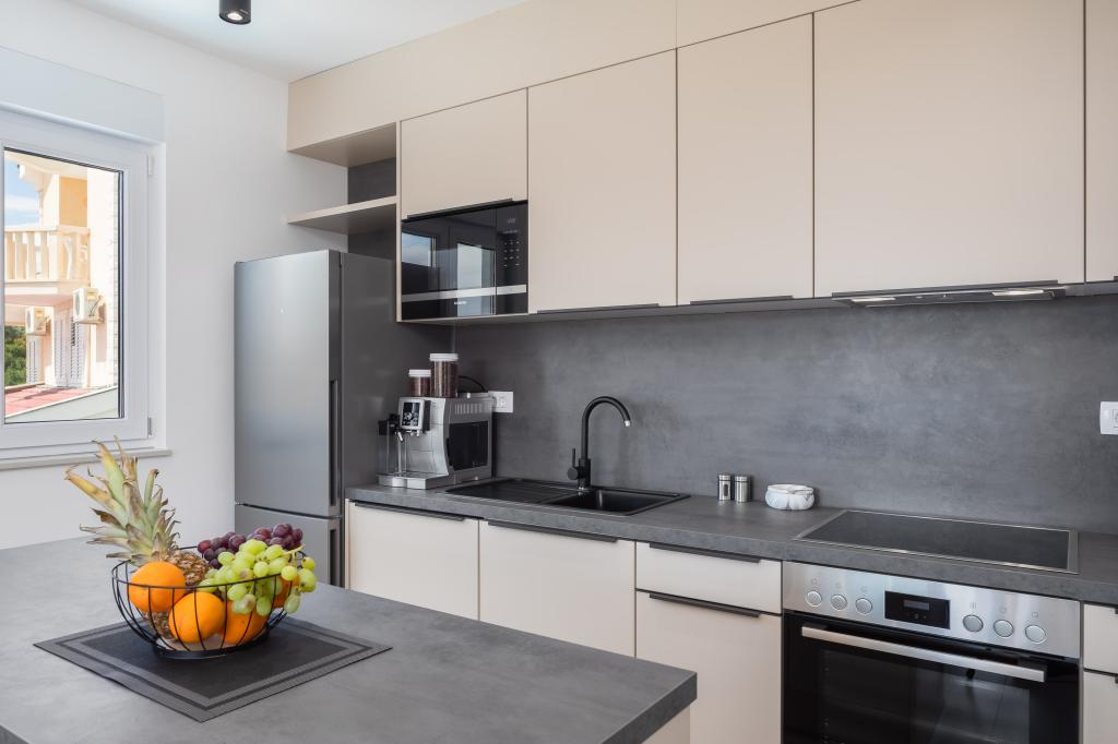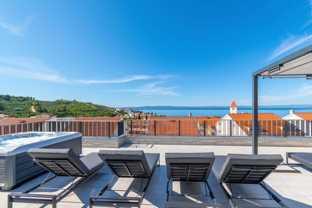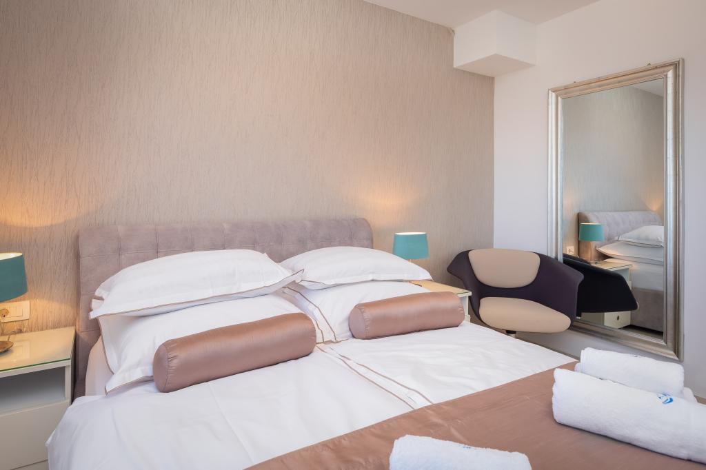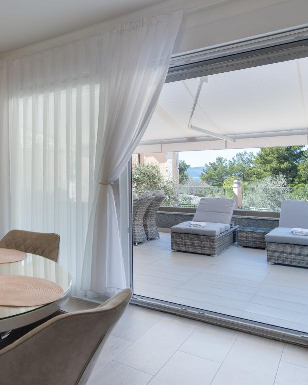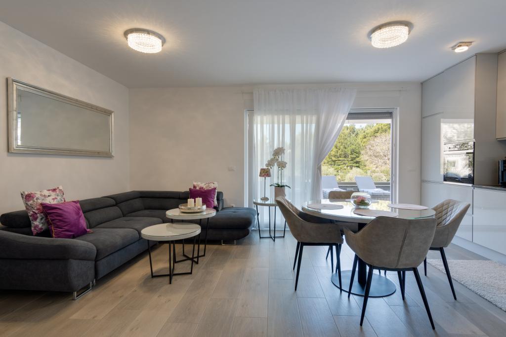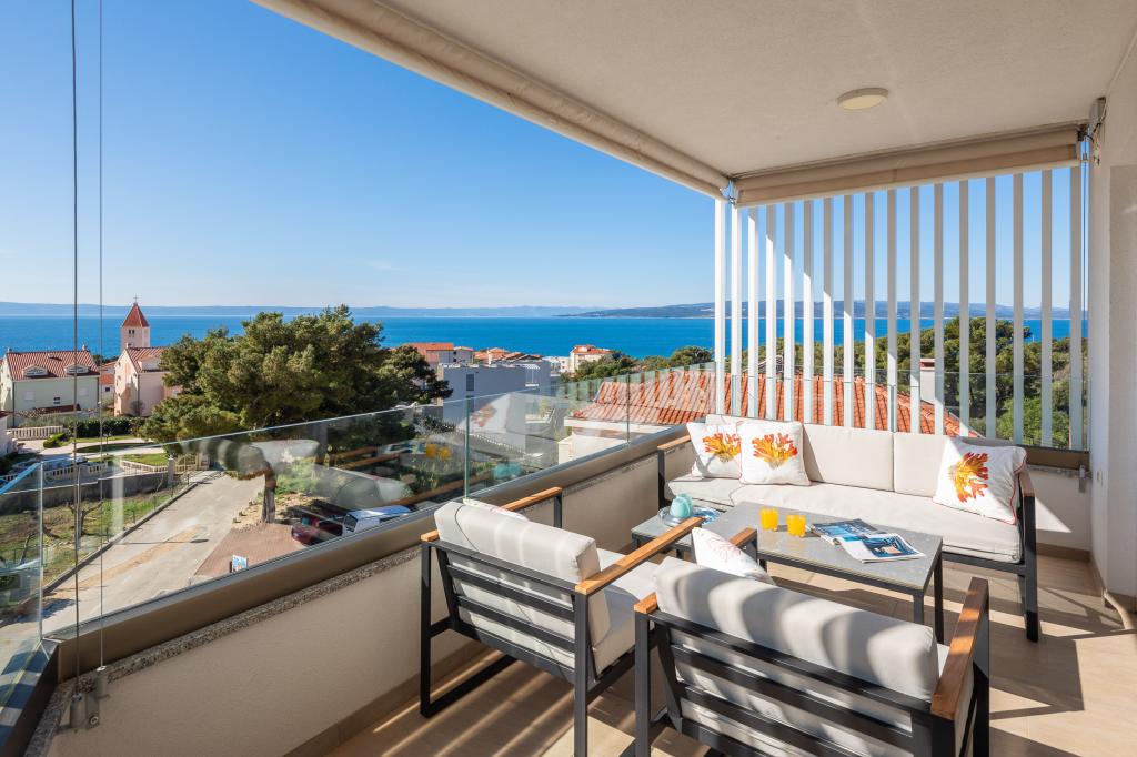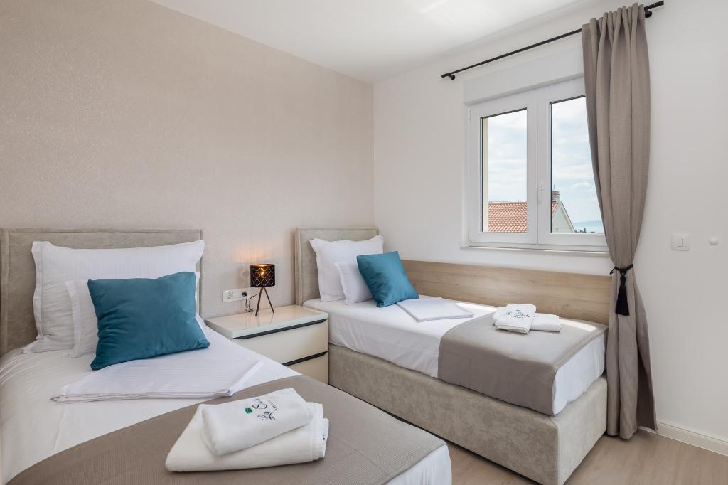 **** VÉGSŐ SZEZONÁLIS AJÁNLAT - 10% kedvezmény minden feltüntetett árból a betöltetlen időpontokra. **** Luxus apartmanokat kínálunk Promajnában. Minden apartman kényelmes hálószobával rendelkezik, okostévével. Minden apartmanhoz saját parkoló tartozik (a földszinti apartmanhoz 2 parkolóhely tartozik). Az apartman kiváló minőségű bútorokkal és gépekkel van felszerelve. A földszinti apartmanhoz elektronikus napellenző és egy további kültéri zuhanyzó tartozik.