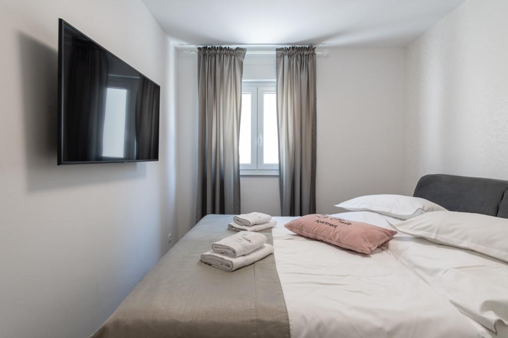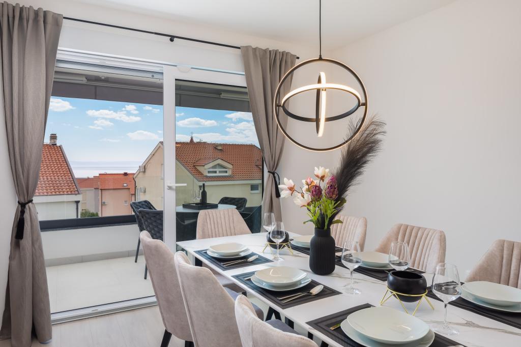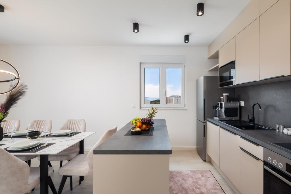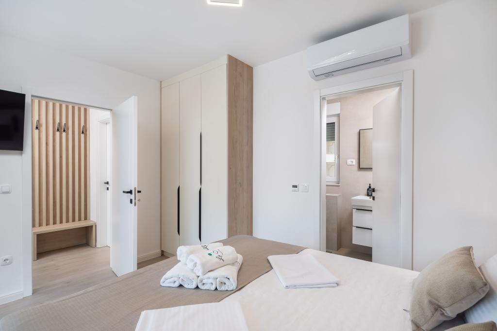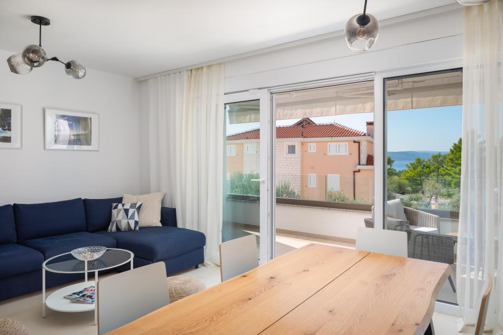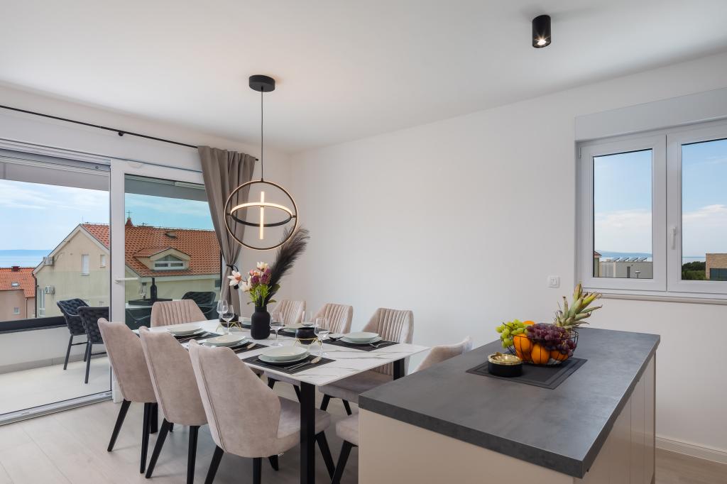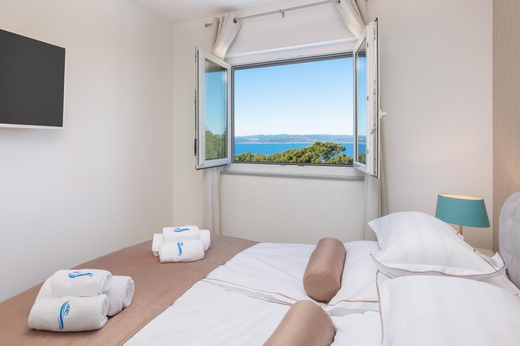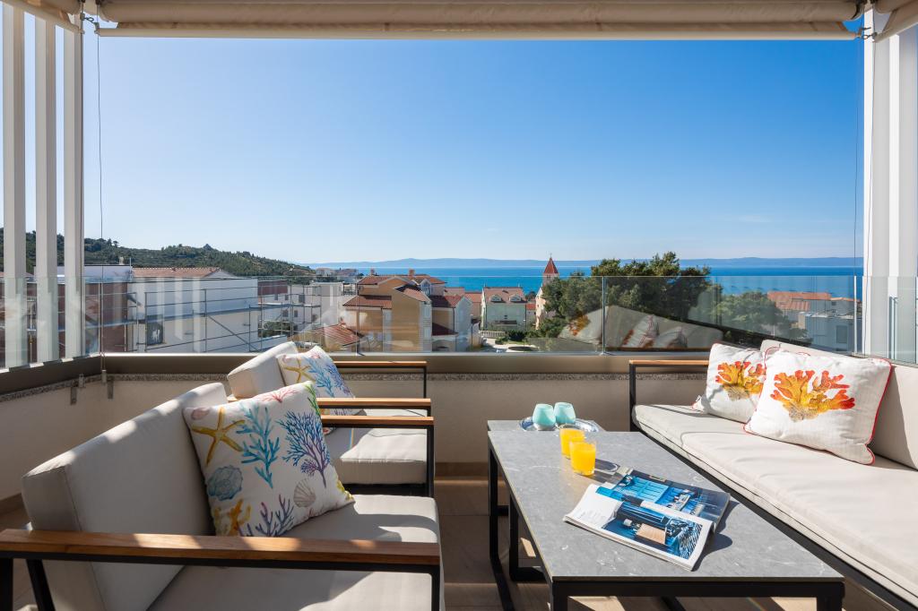 **** VÉGSŐ SZEZONÁLIS AJÁNLAT - 10% kedvezmény minden feltüntetett árból a betöltetlen időpontokra. **** Luxus apartmanokat kínálunk Promajnában. Minden apartman kényelmes hálószobával rendelkezik, okostévével. Minden apartmanhoz saját parkoló tartozik (a földszinti apartmanhoz 2 parkolóhely tartozik). Az apartman kiváló minőségű bútorokkal és gépekkel van felszerelve. A földszinti apartmanhoz elektronikus napellenző és egy további kültéri zuhanyzó tartozik.
