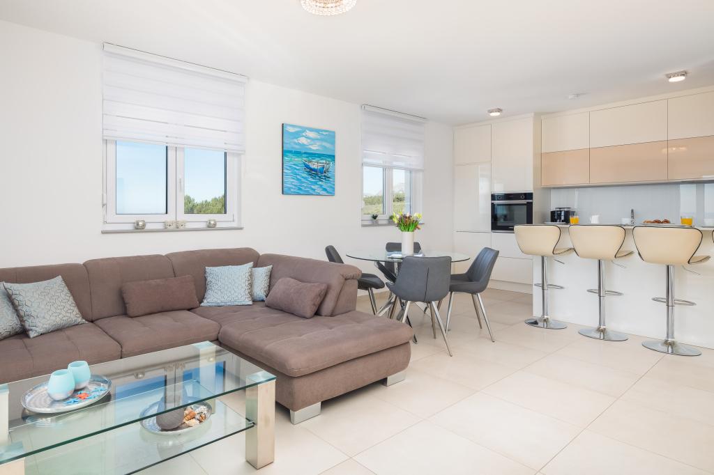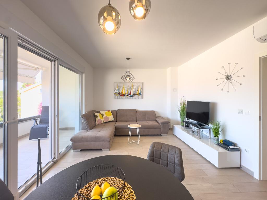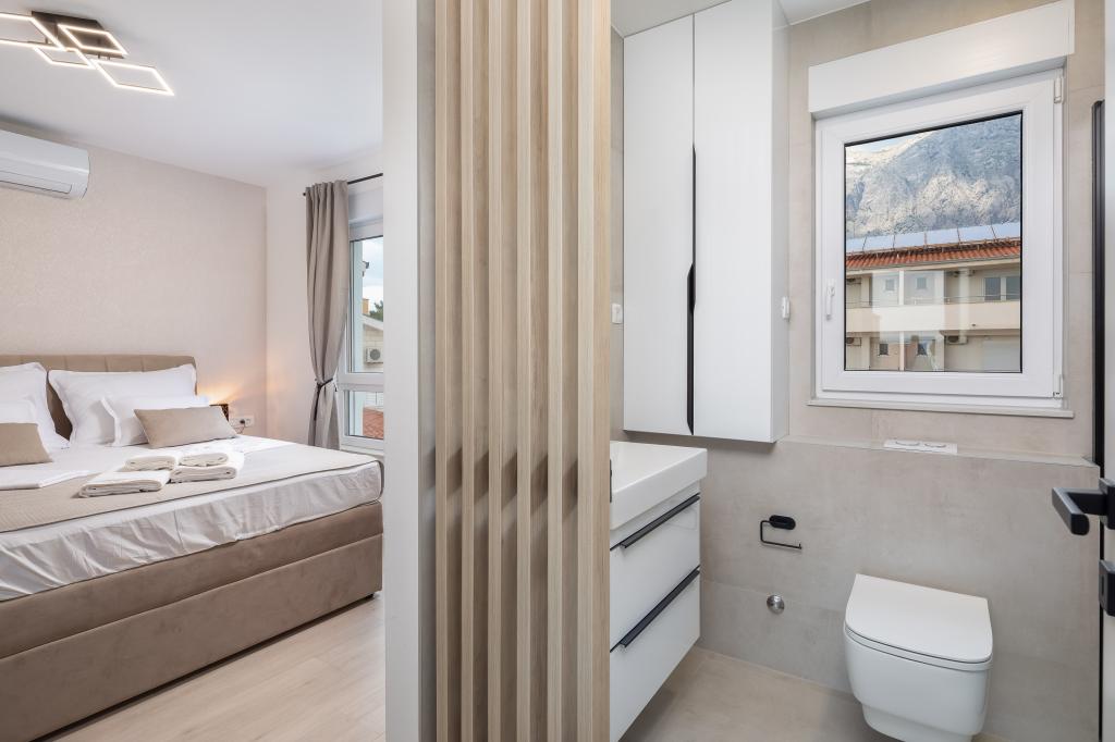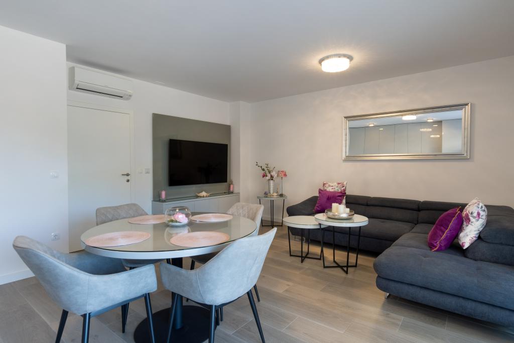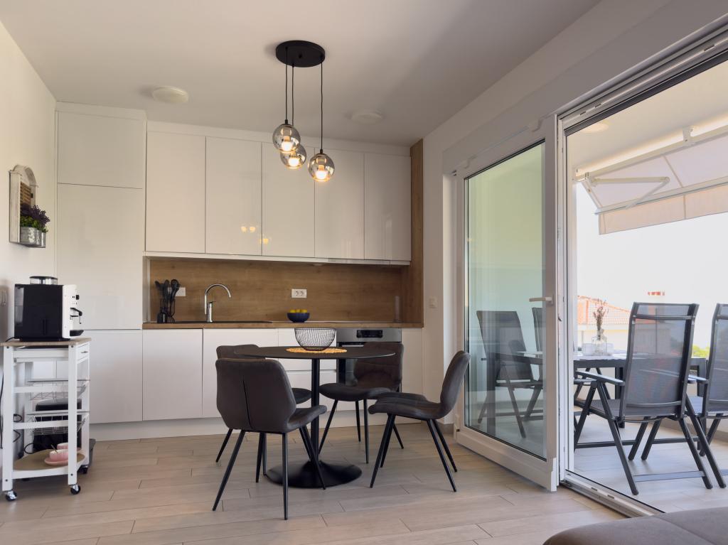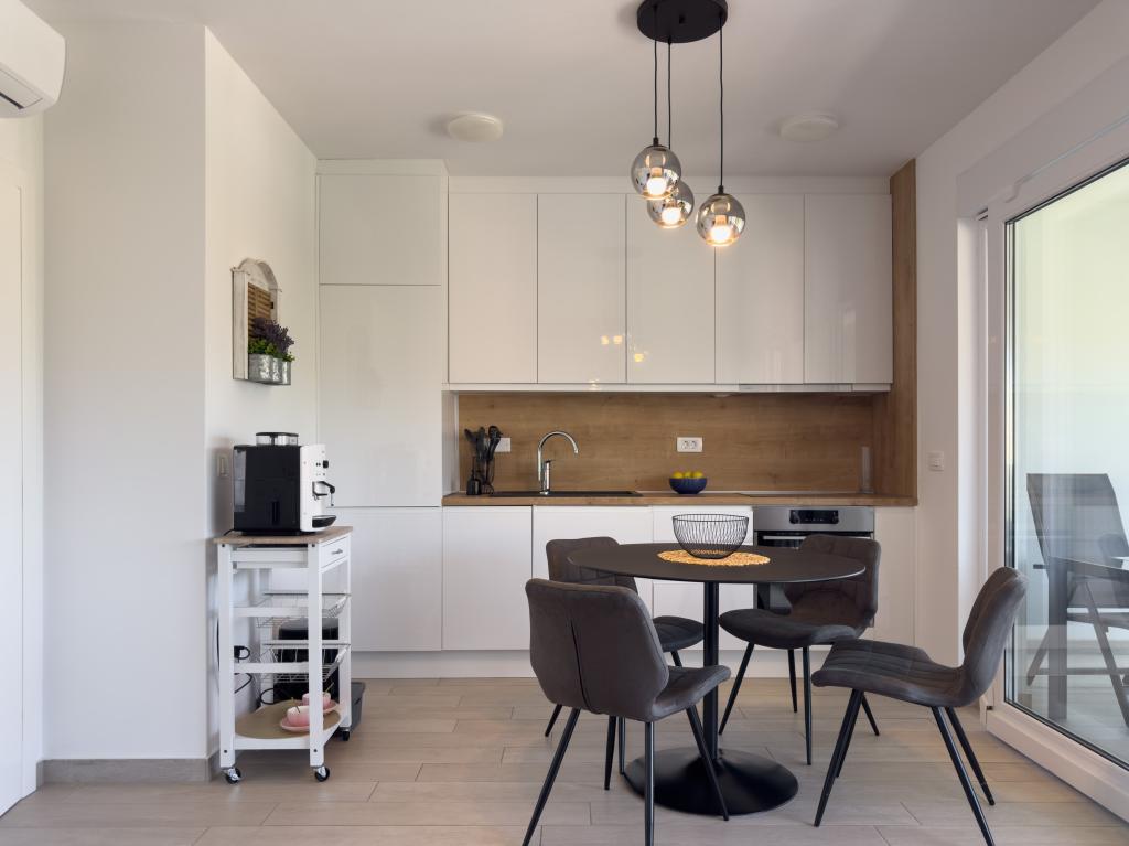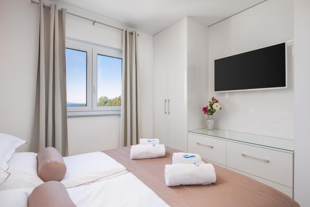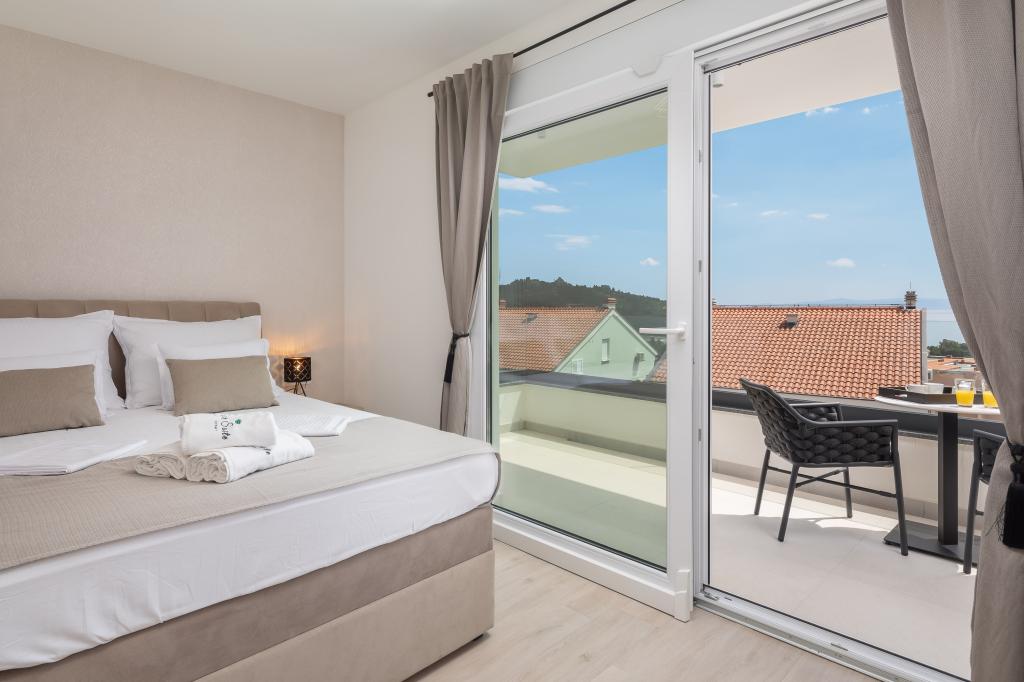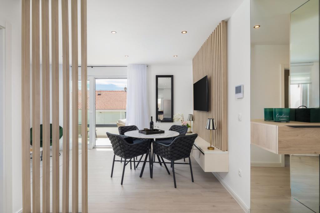 **** VÉGSŐ SZEZONÁLIS AJÁNLAT - 10% kedvezmény minden feltüntetett árból a betöltetlen időpontokra. **** Luxus apartmanokat kínálunk Promajnában. Minden apartman kényelmes hálószobával rendelkezik, okostévével. Minden apartmanhoz saját parkoló tartozik (a földszinti apartmanhoz 2 parkolóhely tartozik). Az apartman kiváló minőségű bútorokkal és gépekkel van felszerelve. A földszinti apartmanhoz elektronikus napellenző és egy további kültéri zuhanyzó tartozik.