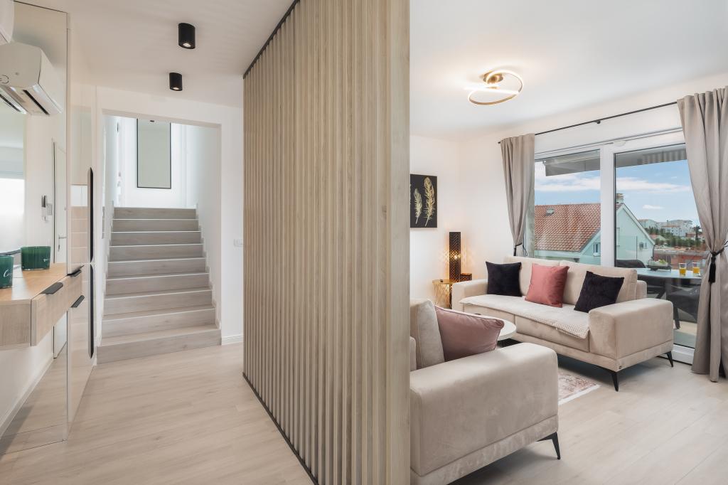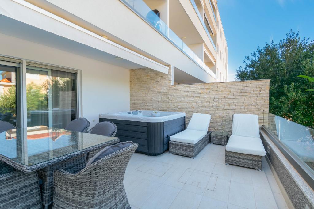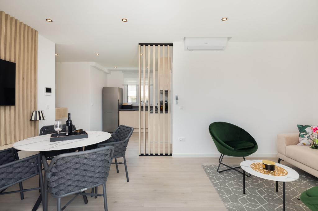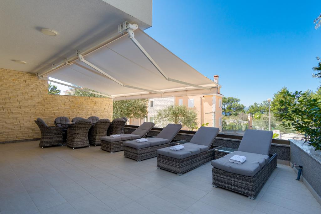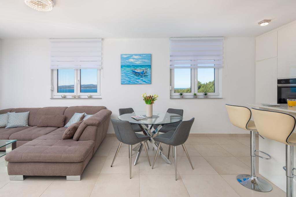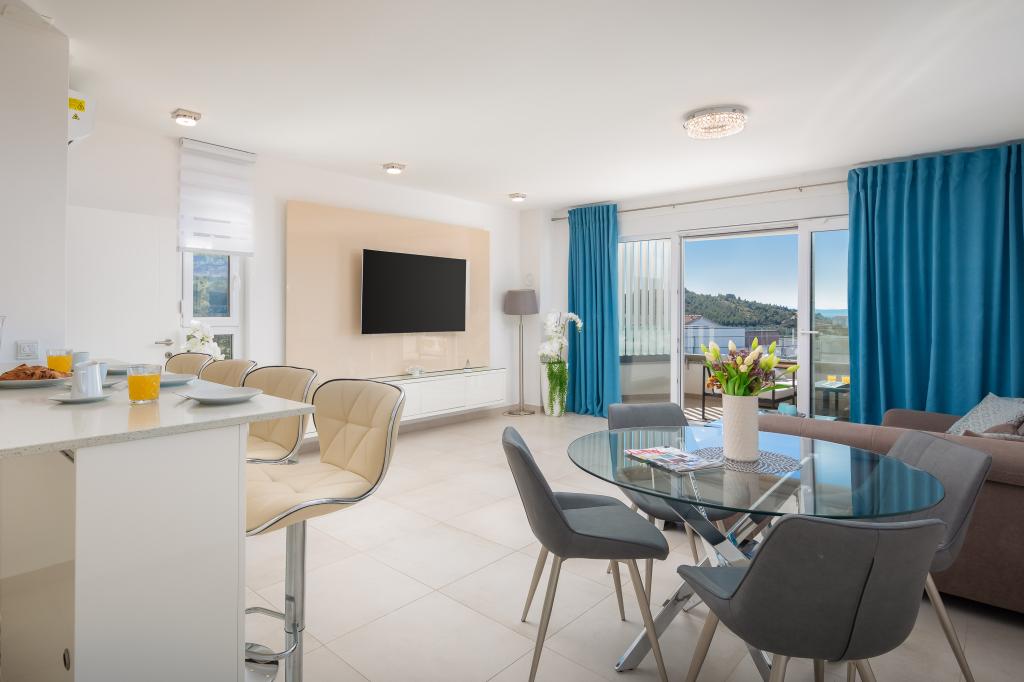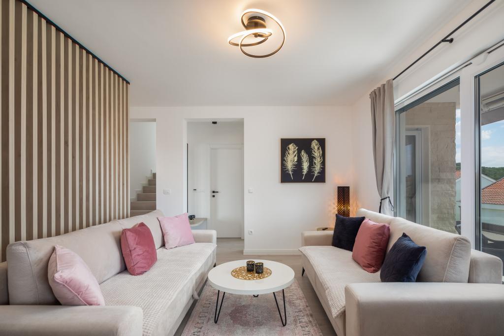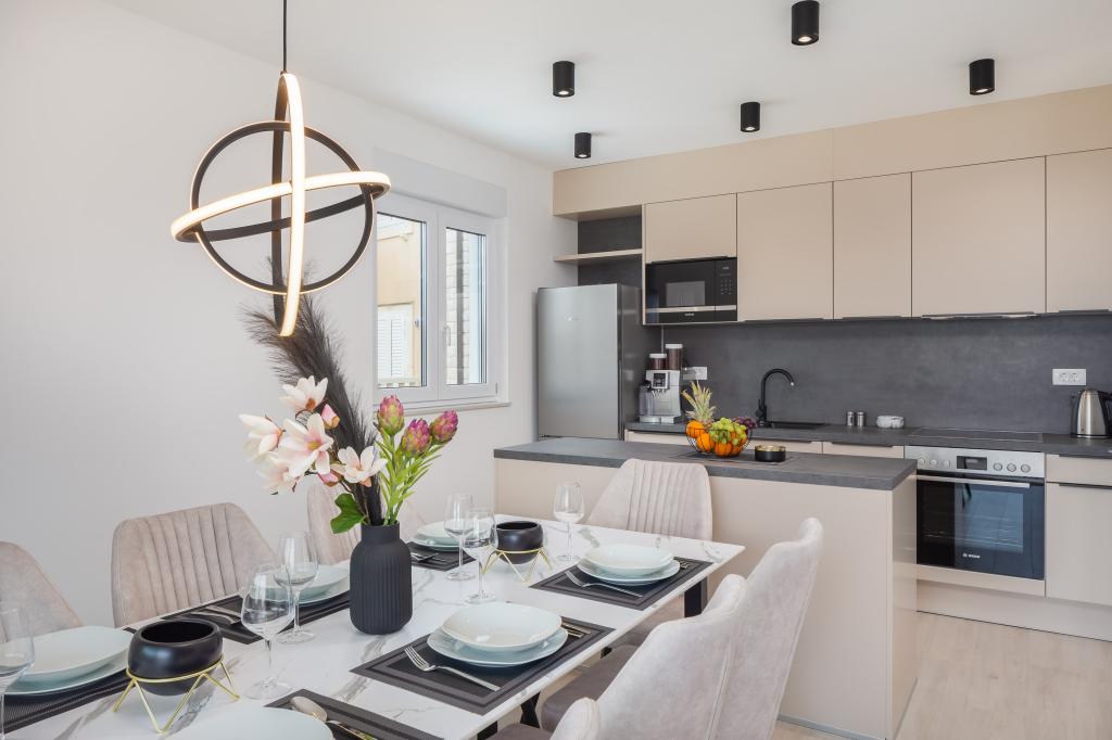 **** VÉGSŐ SZEZONÁLIS AJÁNLAT - 10% kedvezmény minden feltüntetett árból a betöltetlen időpontokra. **** Luxus apartmanokat kínálunk Promajnában. Minden apartman kényelmes hálószobával rendelkezik, okostévével. Minden apartmanhoz saját parkoló tartozik (a földszinti apartmanhoz 2 parkolóhely tartozik). Az apartman kiváló minőségű bútorokkal és gépekkel van felszerelve. A földszinti apartmanhoz elektronikus napellenző és egy további kültéri zuhanyzó tartozik.