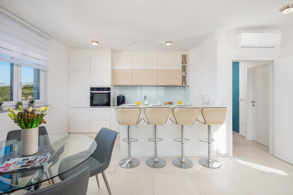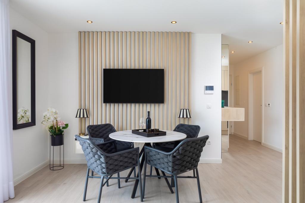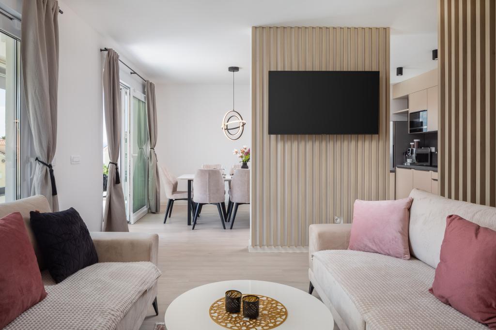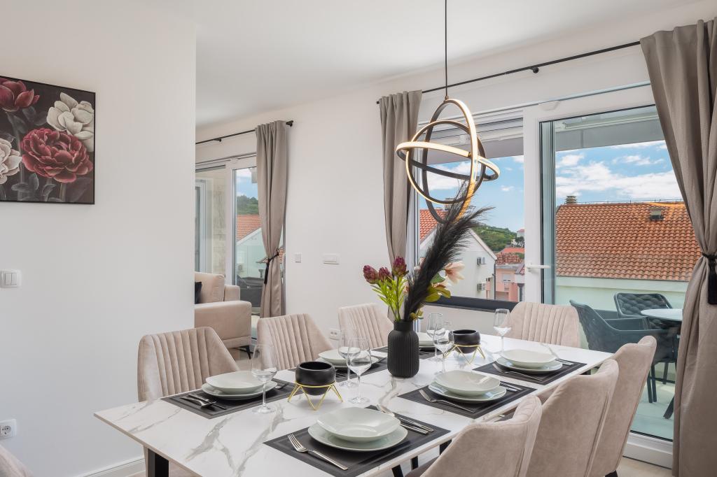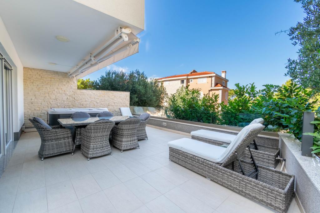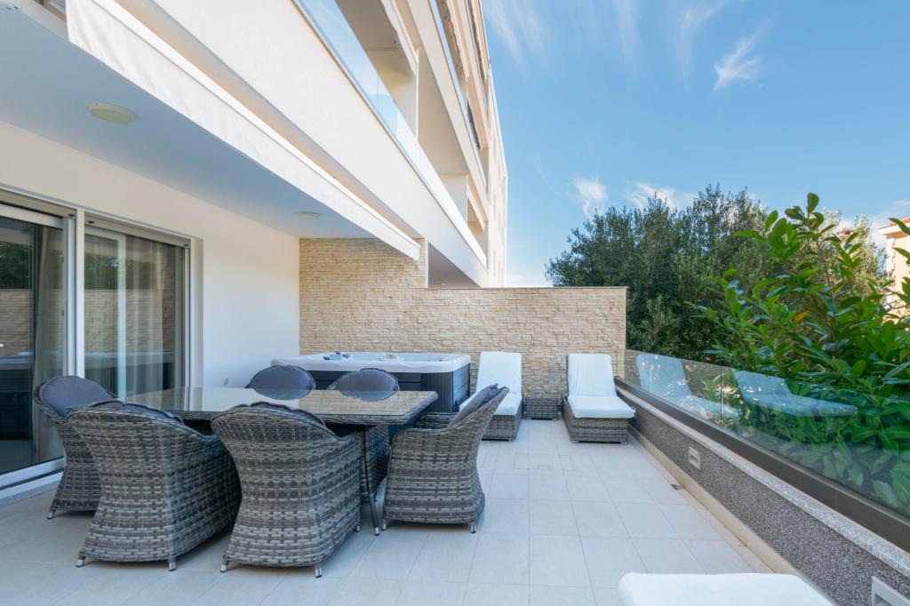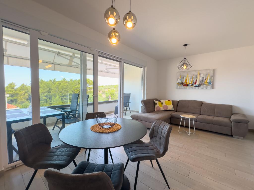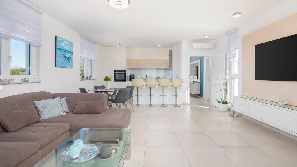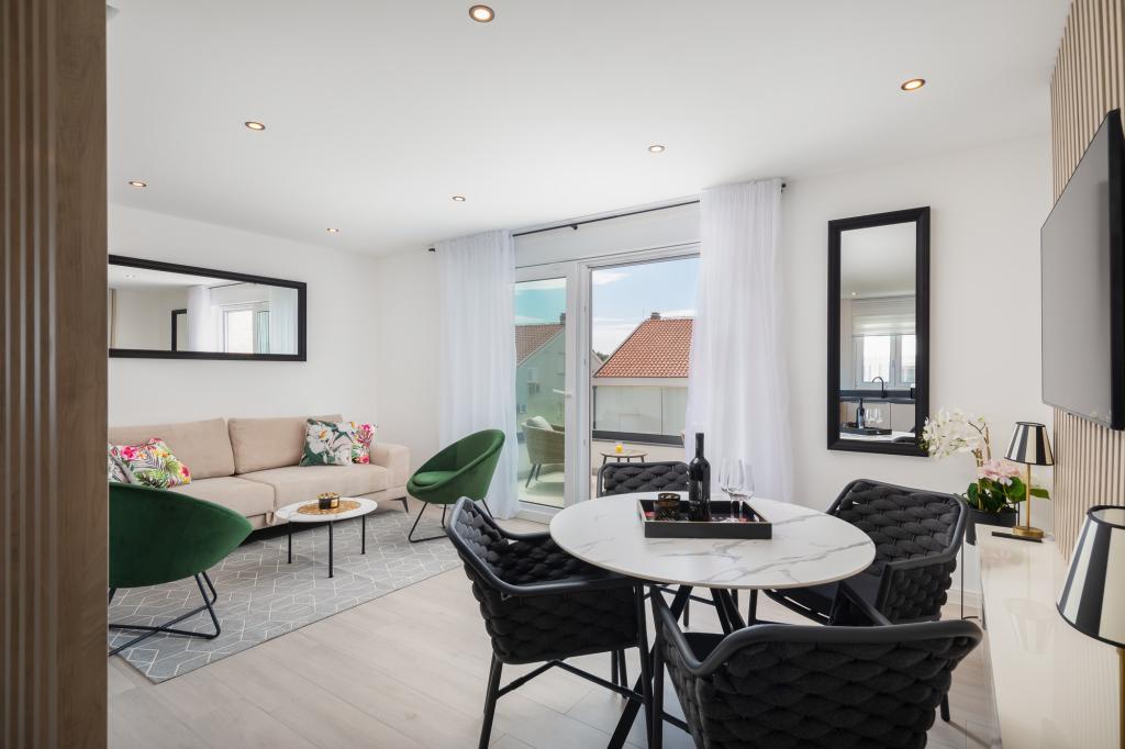**** VÉGSŐ SZEZONÁLIS AJÁNLAT - 10% kedvezmény minden feltüntetett árból a betöltetlen időpontokra. **** Luxus apartmanokat kínálunk Promajnában. Minden apartman kényelmes hálószobával rendelkezik, okostévével. Minden apartmanhoz saját parkoló tartozik (a földszinti apartmanhoz 2 parkolóhely tartozik). Az apartman kiváló minőségű bútorokkal és gépekkel van felszerelve. A földszinti apartmanhoz elektronikus napellenző és egy további kültéri zuhanyzó tartozik.