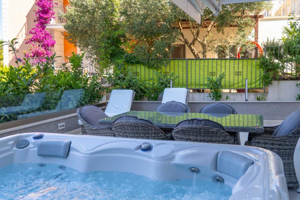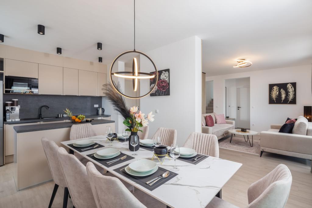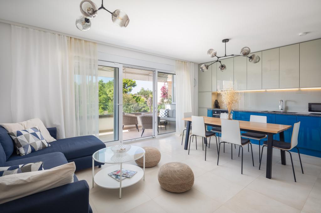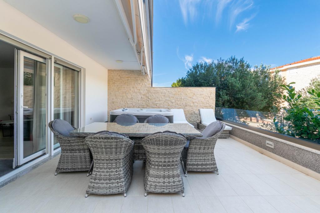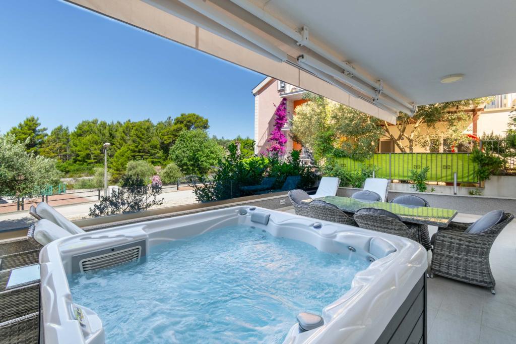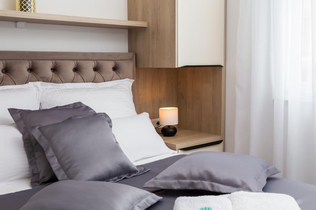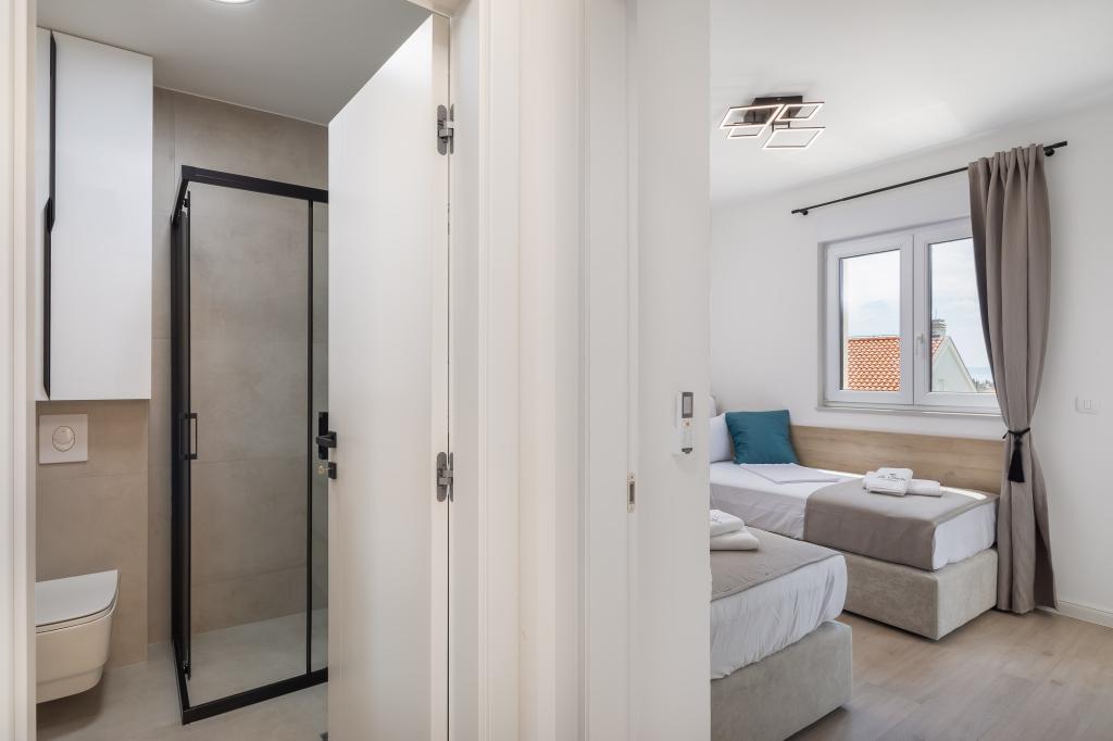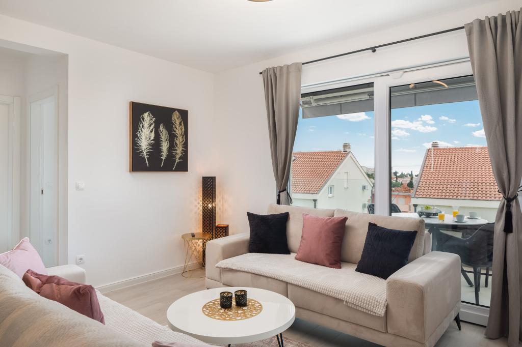 **** VÉGSŐ SZEZONÁLIS AJÁNLAT - 10% kedvezmény minden feltüntetett árból a betöltetlen időpontokra. **** Luxus apartmanokat kínálunk Promajnában. Minden apartman kényelmes hálószobával rendelkezik, okostévével. Minden apartmanhoz saját parkoló tartozik (a földszinti apartmanhoz 2 parkolóhely tartozik). Az apartman kiváló minőségű bútorokkal és gépekkel van felszerelve. A földszinti apartmanhoz elektronikus napellenző és egy további kültéri zuhanyzó tartozik.