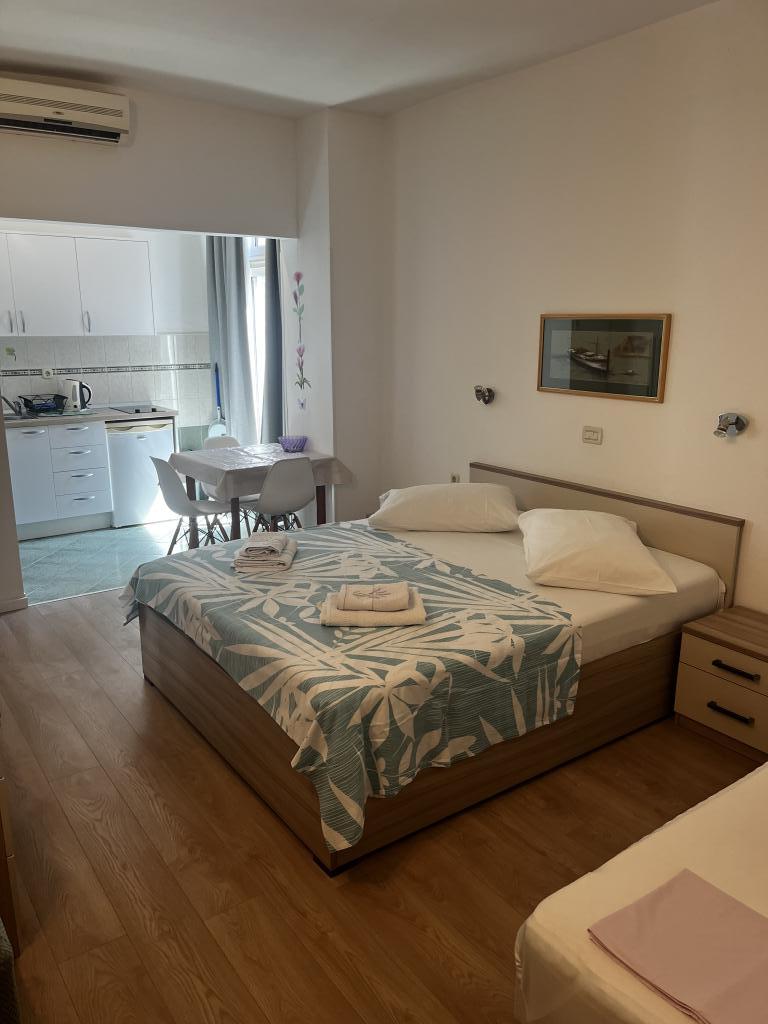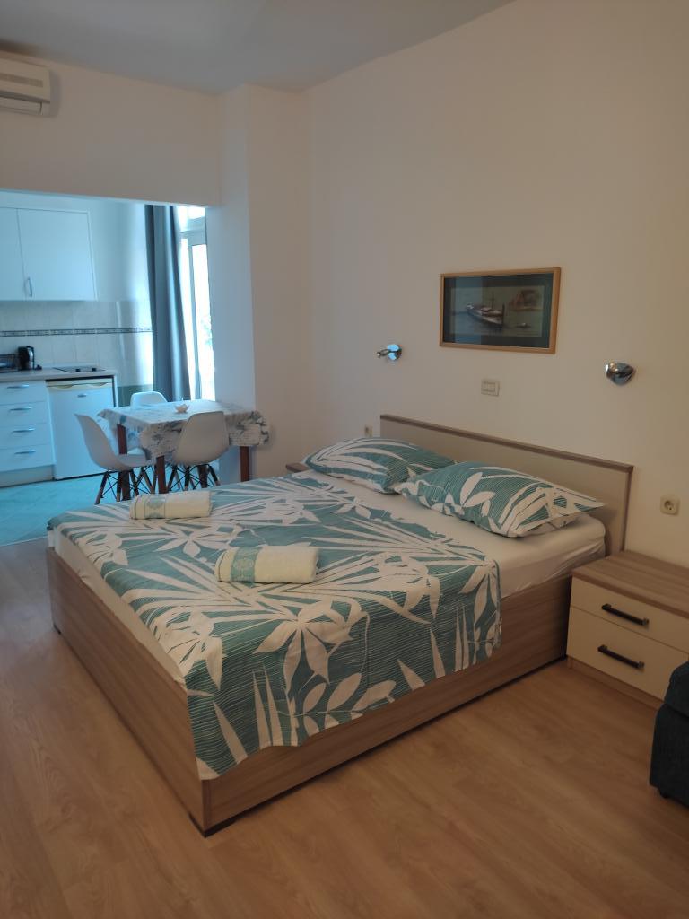 Stúdió apartmanok, első sorban a tenger mellett, teljesen felszereltek, hozzá tartozó parkolóval.