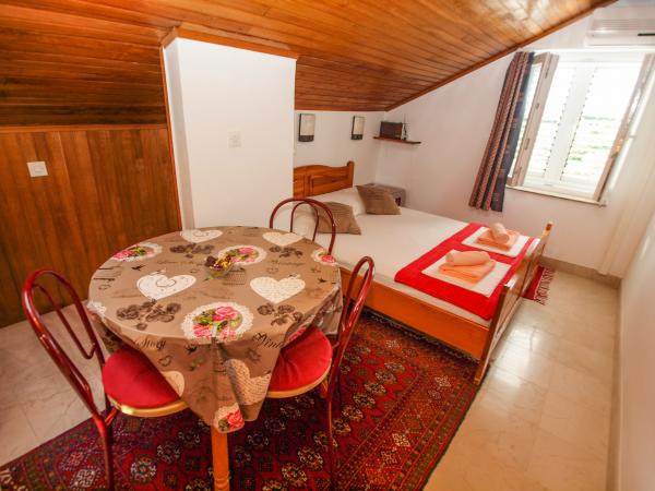 Gulan apartmanok nyugodt környezetben, kilátással a tengerre és a homokos strandok találhatók mintegy 180 méter. A ház kínál stúdió apartmanok légkondicionáltak, fürdőszoba, konyha, TV és vezeték nélküli internet. Van lehetőség a kerti grill. Parkolás az udvarban.