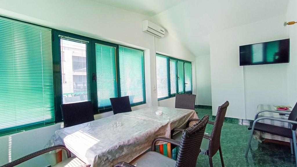 A kapott szállást nem takarították ki érkezésünk előtt, pókháló és por minden falon. A bútorok régiek, romosak. A létesítményben nincs WiFi, bár állítólag van. Műholdas televízió nincs, bár állítólag vannak műholdas csatornáik. 10 hazai csatornánk volt, interferenciával, így azokat sem tudtuk nézni. A klíma nem működik, vagyis a hűtőteljesítmény minimális. Parkolóhely biztosított, de nem az a cél, hogy nyaralás közben használja a járművet, mert a többi bérlő mögötted parkol, így nem tud parkolni. Egyszóval, aki elég rugalmas, annak ez az utolsó választás a jövőbeli nyaralásokhoz...