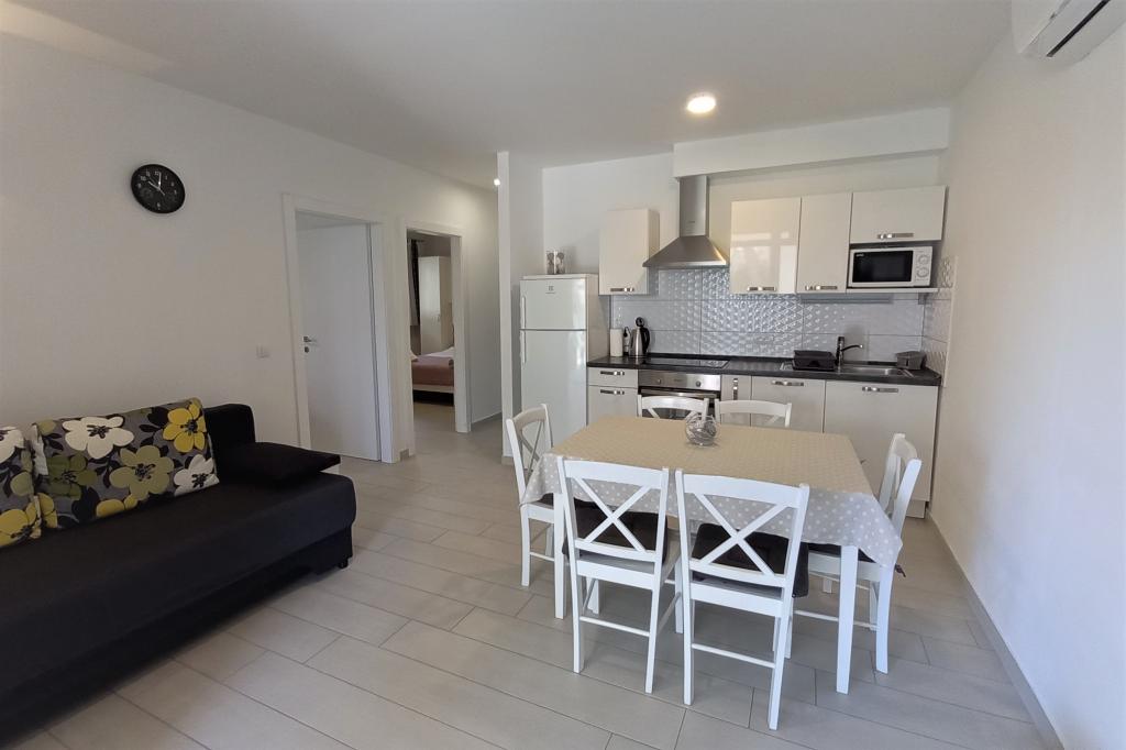 A MIRA apartmanok 2 stúdió apartmanból (2-4 fő részére) és 2 apartmanból (4-5 fő részére) állnak. A földszinten helyezkednek el, parkolási lehetőséggel az apartmanok előtt. 250-300 méterre vannak a fő strandtól. A standard felszereltségű légkondicionáló és ingyenes WiFi (optikai internet-hozzáférés) mellett a stúdió apartmanok TV-vel, mikrohullámú sütővel, mosógéppel és mosogatógéppel is rendelkeznek. A stúdió apartmanok külön hálószobával rendelkeznek, amelyet függöny választ el a nappalitól. Az A4 apartmanok (ID71793) 2 hálószobával, 1 fürdőszobával + WC-vel rendelkeznek. Az A4+1 apartman (ID71792) 2 hálószobával és 2 fürdőszobával rendelkezik. A standard felszereltségű légkondicionáló mellett műholdas TV-vel, ingyenes WiFi-vel (optikai internet-hozzáférés), mikrohullámú sütővel és mosógéppel is rendelkeznek. Minden apartmanhoz és stúdió apartmanhoz ingyenes parkolási lehetőség tartozik az apartmanok előtt. Az apartman (A4+1) ára 4 főre vonatkozik, további személyenként 10 euró felár fizetendő.