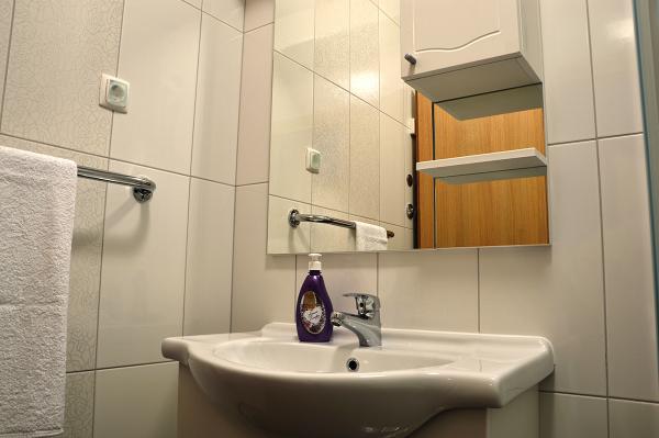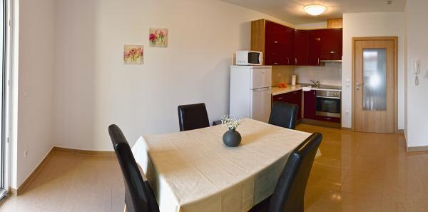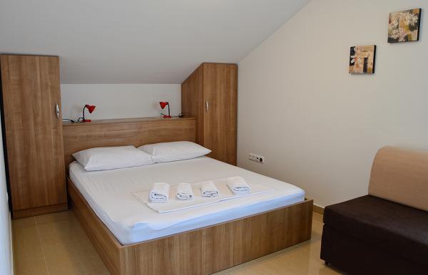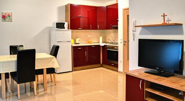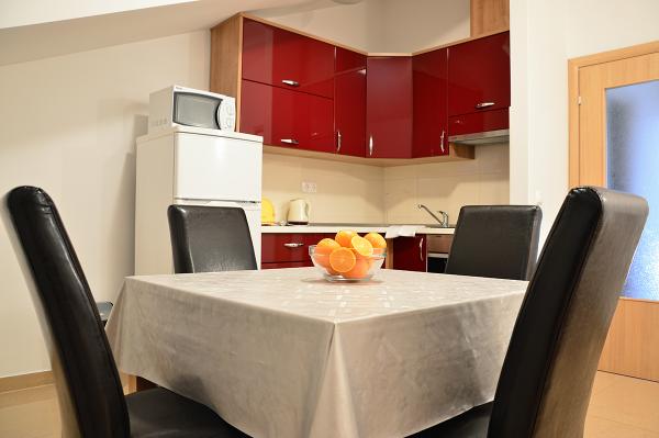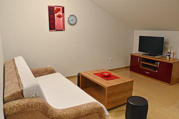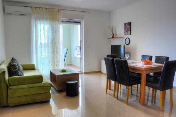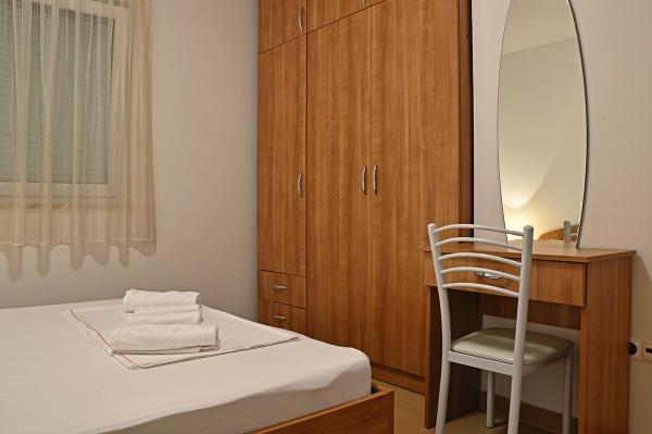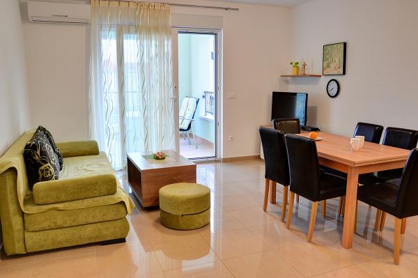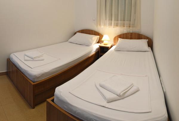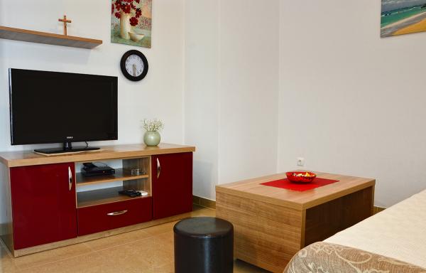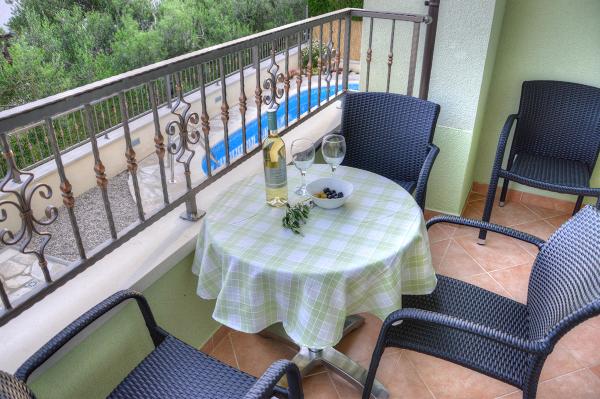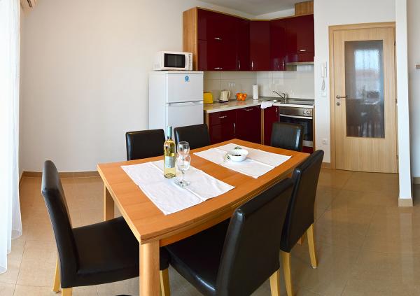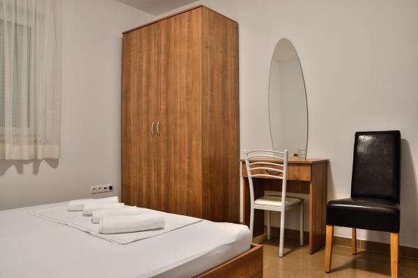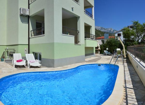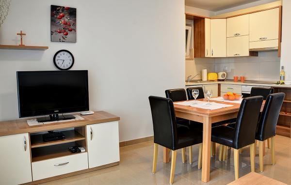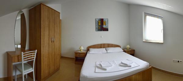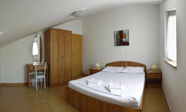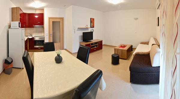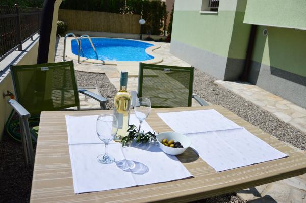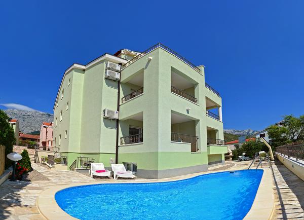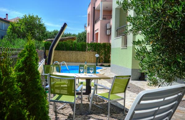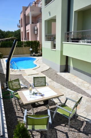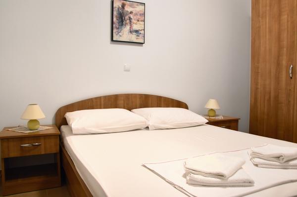 Egy alagsori 2+2 apartmanban laktunk. Minden gyönyörűen tiszta volt, új, teljesen felszerelt. Felmásztunk a lépcsőn, és egyenesen a medencébe ugorhattunk. A medence szép volt, tiszta. A háziasszony nagyon kedves. A tenger közel van, 3 perc sétára a háztól. Minden 1*-ben. Szívesen visszatérnénk ide!