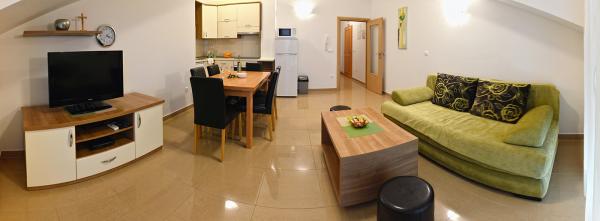 Lakossági adót az az ár tartalmazza.A szállás kiváló volt, az apartmanban minden megvolt, ami a kellemes tartózkodáshoz kellett, és ha bármire szükségünk volt, a barátságos háziasszonyhoz fordulhattunk. Minden tiszta, rendezett és még szebb, mint a képeken. A tengerre néző kilátás isteni volt! A medence tiszta volt, a víz meleg, kellemes, privát légkörben úszhattunk. A házigazdák nagyon barátságosak, a kiszolgálás magas színvonalú. Minden ajánlás. Visszajövünk!