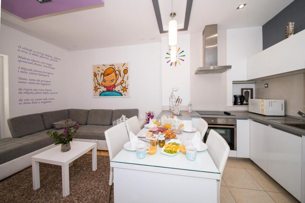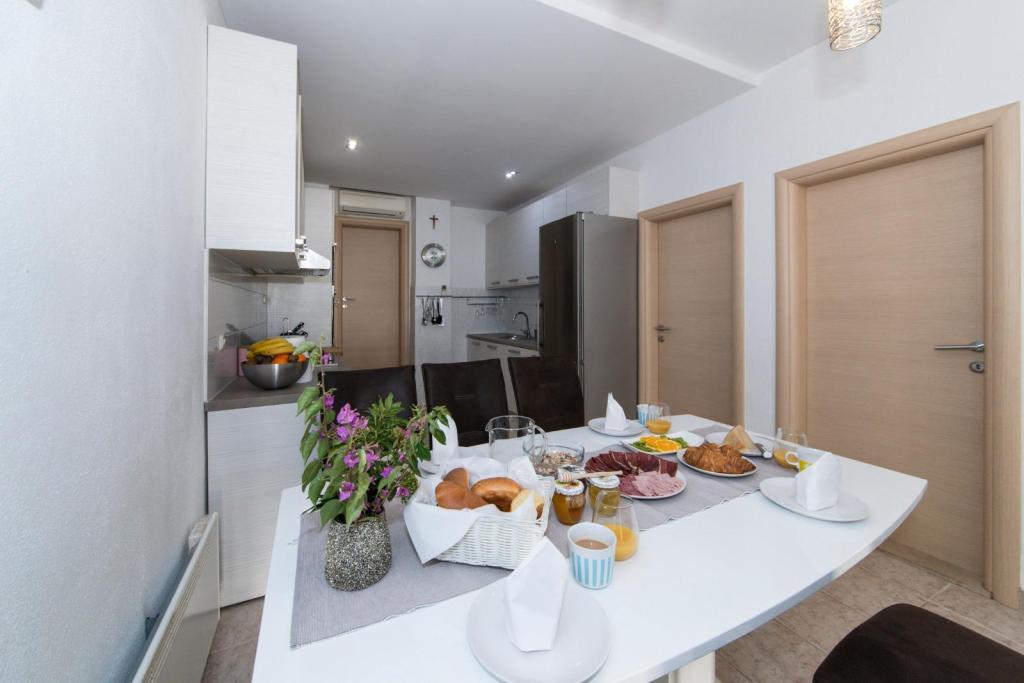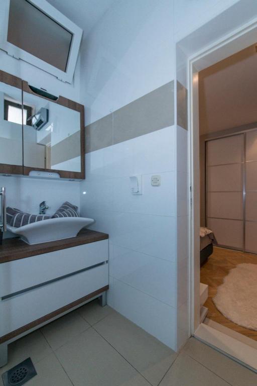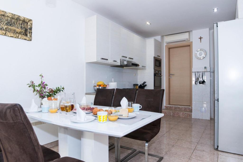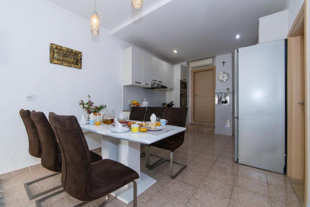 Szállást kínálunk házunkban Promajnában, a makarskai tengerparton. Promajna körülbelül 6 km-re van Makarskától, és a holtszezonban körülbelül 250 lakos él a városban. Magában a városban van egy gyönyörű nagy strand apró kavicsokkal és hatalmas fenyőfákkal az árnyékban ücsörögni vágyók számára, a várostól nyugatra pedig több kisebb, szebb, csendesebb strand is található. Promajna nagyszerű hely egy csendes, családi nyaraláshoz, a tiszta tenger élvezetéhez és a csodálatos éjszakai sétákhoz. Házunk körülbelül 300 méterre van a tengertől, és a tengerhez vezető út pontosan azon a helyen végződik, ahol a fő strand a nyugati kis strandokkal csatlakozik.