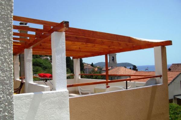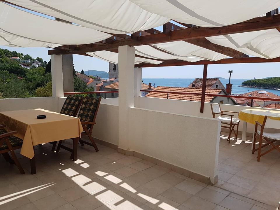 4 fős apartman, egy csendes Prvić Luke utcában, 100 méterre a központtól, tengerre néző kilátással, 50 m2 alapterülettel, a ház 1. emeletén, külön bejárattal, 30 m2-es terasszal. Az apartman egy étkezős konyhából és nappaliból (egy tágas szobában), hálószobából, fürdőszobából és előszobából áll. A lakás teljesen felszerelt: légkondicionáló, TV/műholdas adás, Wi-fi, mikrohullámú sütő, mosogatógép és mosógép, kis háztartási gépek, edények, elektromos grill. Érdekes a modern horvát festészet szerelmeseinek. Babaágy és etetőszék rendelkezésre áll. A terasz védőkerítéssel van ellátva a babák és a háziállatok számára.