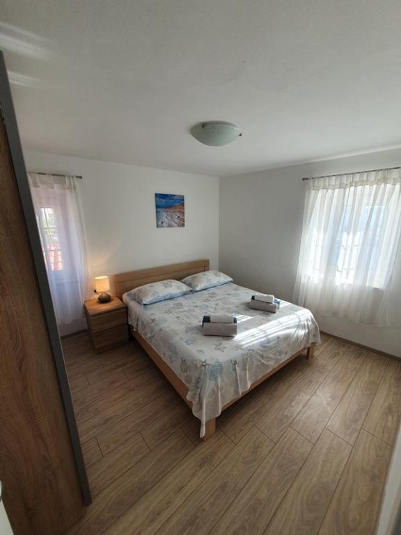 Az Ukić-ház a tengerre néz, és a város központjában, az éttermek és üzletek közelében található. A hely tökéletes egy igazi vakációhoz, mert nincsenek autók a szigeten. A sziget komppal csatlakozik a szárazfölddel. Két újonnan felújított apartmant kínálunk gyönyörű kilátással a tengerre és az osztrigára. Az apartmanok egy hálószoba. Távolság a strandtól 2 perc séta