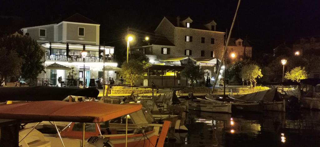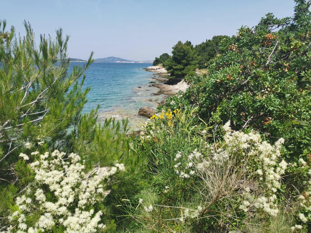 A létesítmény nagyszerű helyen található, mindössze egy perc sétára a tengertől és a strandtól, az apartman előtt pedig egy kültéri zuhanyzó található. Az apartmanok egy családi ház földszintjén találhatók, tengerre néző kilátással, az udvarok tágasak és fedettek. Az apartmanokat zöld növényzet veszi körül, és egész nap védik a naptól, így kényelmesen lehet bennük tartózkodni és aludni... Örömmel adunk tanácsot, hogy mely szigettermékeket vásárolhatja meg Prvićen, hogyan juthat el a Krka és a Kornati Nemzeti Parkokba, hol bérelhet hajót, mit érdemes meglátogatni Prvićen, Vodicén és Šibeniken, a Prvićből Vodicébe és Šibenikbe tartó rendszeres Jadrolinija hajójárat menetrendjéről, árairól és indulási idejéről...