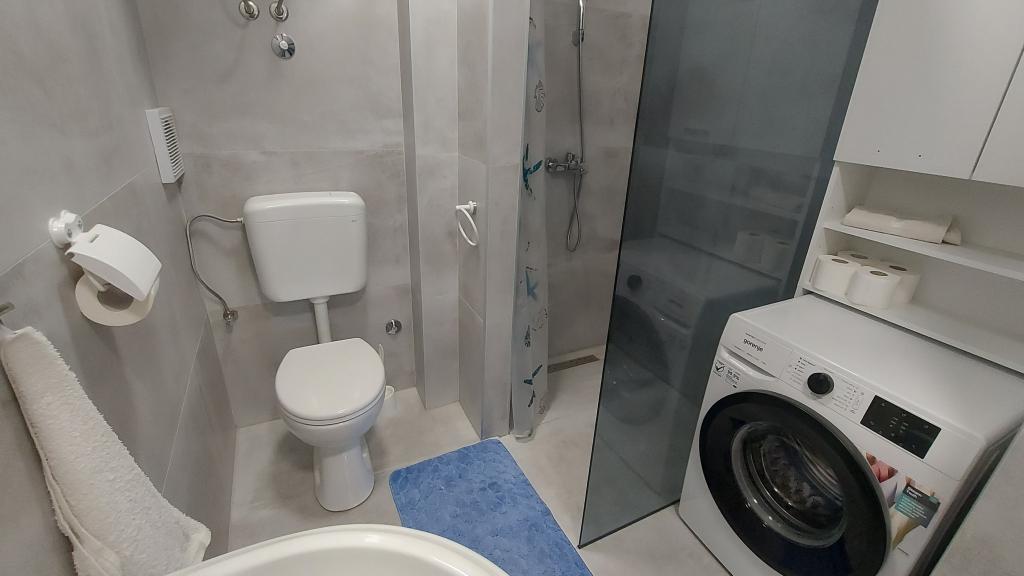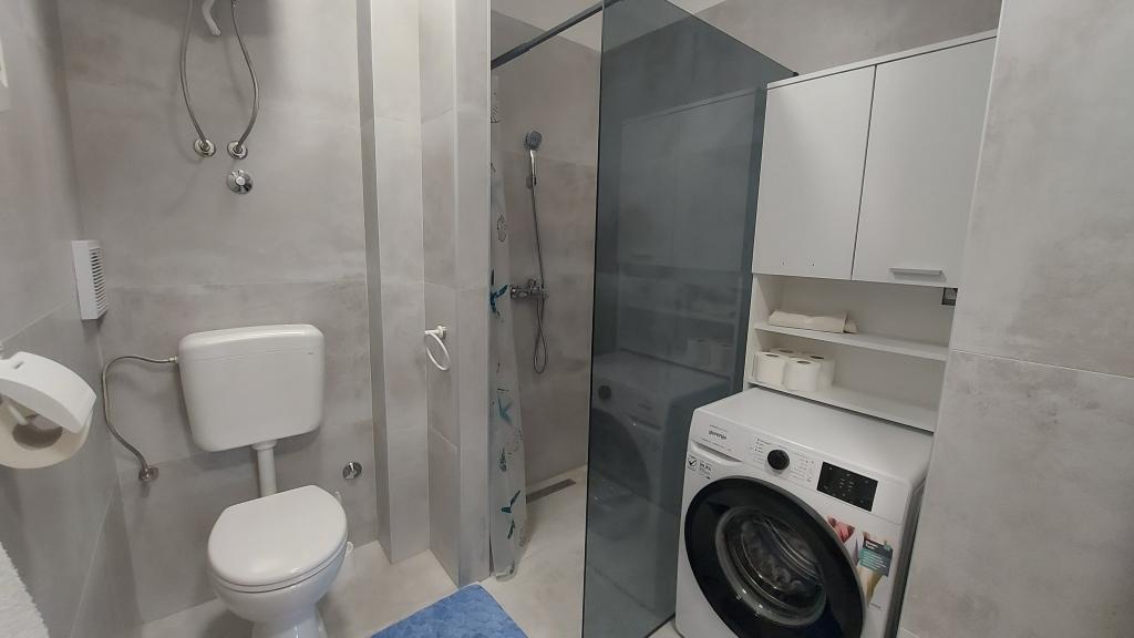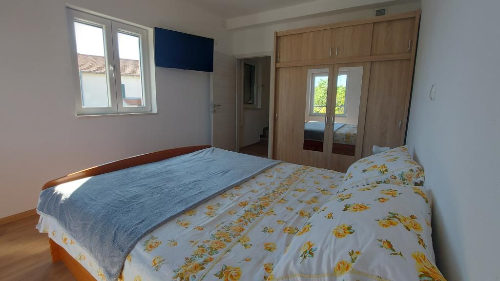 A lakásban, vagy inkább a ház első emeletén található egy hálószoba franciaággyal, egy másik szoba két egyszemélyes ággyal, és egy kanapé a nappaliban. A felszereltséghez tartozik légkondicionáló, műholdas TV, mosogatógép, mosógép, DVD-lejátszó, korlátlan wi-fi internet, konyha tűzhellyel, egy kis hűtőszekrénnyel és egy nagyobb hűtőszekrénnyel fagyasztóval, kávéfőző, mikrohullámú sütő, vízfőző... A körülbelül 4 négyzetméteres teraszon asztal és 4 szék található. Ha már járt Šepurinában, egy nagy templom közelében vagyunk, 100 méterre a tengertől. Az apartman 5 percre van a központtól, így elég messze van ahhoz, hogy ne hallja a kávézók zaját és a tömeget. Ha autóval érkezik, Srimában parkolhat, ahol a parkolás napi 5 euróba kerül. Ha Vodicébe vagy Srimába érkezik, hívja a taxihajót, és mi megadjuk az elérhetőségeket. Ha Šibenikbe látogat, a rendszeres hajójárat 1 órát vesz igénybe Šepurináig, az utazást pedig még élvezetesebbé teszi a gyönyörű Szent Antal-csatornán és a šibeniki szigetvilágot díszítő szigeteken való átkelés. Vodice 15 perc autóútra, Srimától pedig 5 perc alatt elérhető.