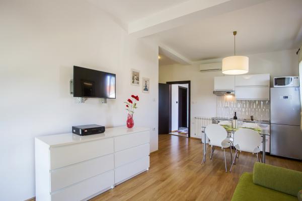 Üdvözlet, Apartmanjaink Stinjanban, egy népszerű, de csendes turisztikai helyen találhatók, mindössze 4 km-re Pula központjától és 2 km-re a Brijuni Nemzeti Parktól, egy nemzeti parktól. Brijuni gyönyörű szigetek, ahol szafari park, dinoszaurusz lábnyomok, golfpálya, gyönyörű természet és strandok találhatók. Apartmanjaink közelében üzletek, bárok, éttermek találhatók. Kérjük, vegye fel velünk a kapcsolatot bármilyen információval;)