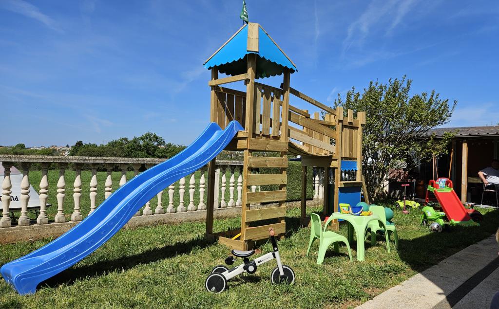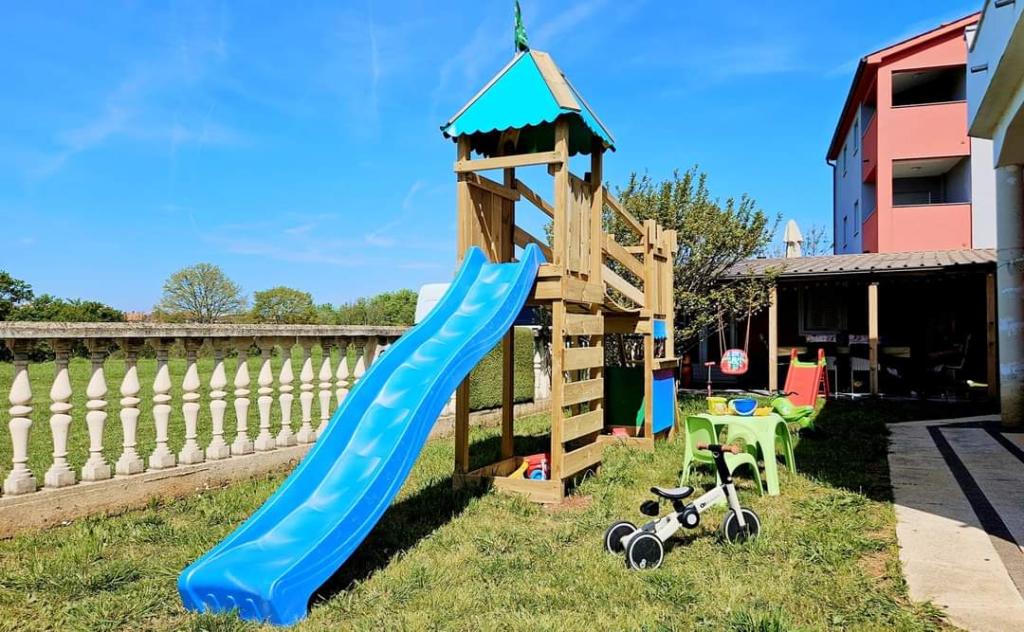 Az apartmanok újak és teljesen felszereltek, és a házon belül egy nagy parkolóval, valamint két grillezővel ellátott terasszal rendelkeznek. Bár a központ közvetlen közelében (kb. 2 perc autóútra) és a tengertől (kb. 5 perc autóútra a Verudela város fő strandjától) találhatók, egy rét veszi körül, és békét és igazi pihenést garantál.