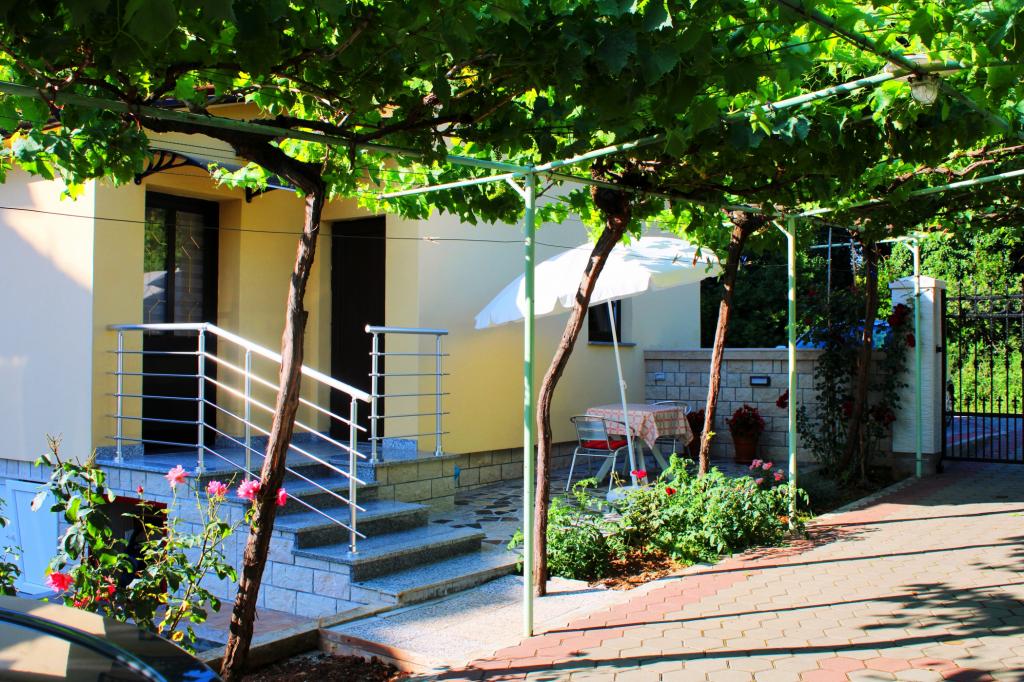 Családi ház, amelynek két apartmanja van, egy 4-5 főre, egy másik kettőre. Mindkét apartman a földszinten található. A 4-5 fős apartman tágas, világos és kényelmes, két hálószobával, konyhával, étkezővel, nappalival, fürdőszobával és terasszal. A lakás légkondicionált, wifi-vel és minden háztartási készülékkel rendelkezik. A vendégek élvezhetik a kertre és az udvarra néző teraszt, és használhatják a grillezőt. Két személyes apartman franciaággyal, konyhával, fürdőszobával és terasszal rendelkezik. Ideális helyen, 3 perc autóval a belvárosi parkolótól és 3 perc autóval a strandtól. Háziállatok nem engedélyezettek.