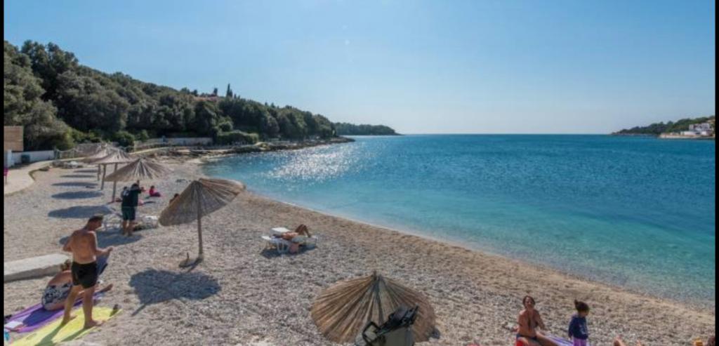 Novogradeni és berendezett apartmanok a homokos öböl. Csupán 5 perc sétára a strandtól. A Pula 3 km-re, de van egy buszmegálló 50 méterre. A közelben számos étterem, vízi vidámpark és egyéb szórakoztató.