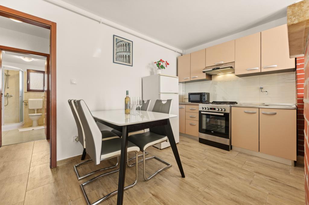 Pula egy csendes részén, kiváló elhelyezkedésű apartmanok találhatók a tenger és a turisztikai üdülőhelyek közelében, gyalogosan is elérhető az óváros. A rendezett és kényelmes apartmanokban minden megtalálható, amire egy nyugodt és pihentető nyaraláshoz szükség van. Minden apartmanhoz saját terasz tartozik. A tömegközlekedési állomás közelsége lehetővé teszi, hogy elkerülje a tömeget, és könnyebben közlekedhessen anélkül, hogy saját autót használna, amelynek ingyenes parkolóhelyet biztosítunk. Bármilyen kérdés esetén állunk rendelkezésére. Várjuk érkezését!