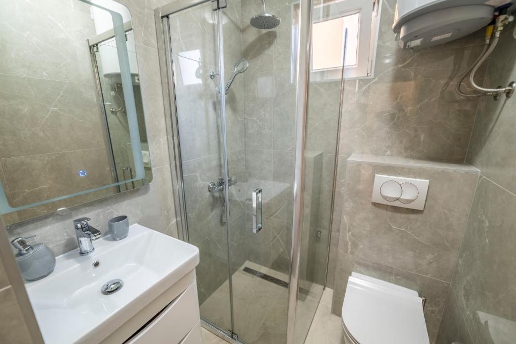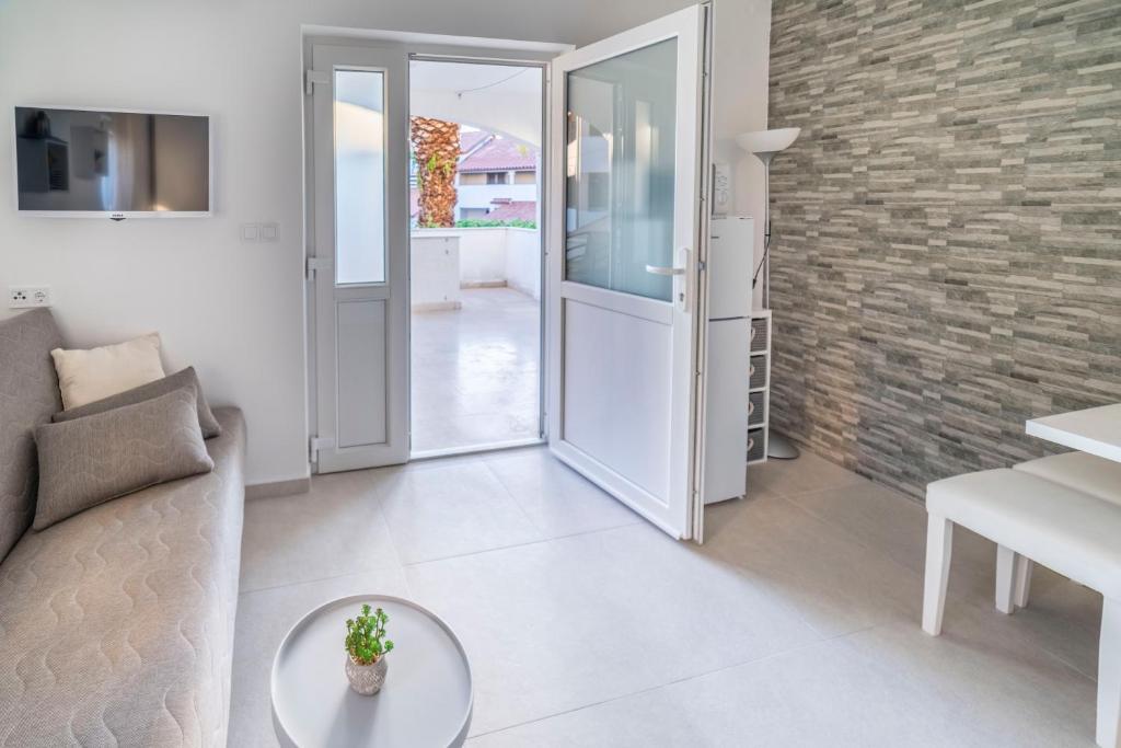 Az apartmanok Stinjan városában, Pula központjától 4 km-re találhatók. A kiválóan összekapcsolt, csendes hely és a tenger közelében Stinjan Pula legkívánatosabb úti célja! Az apartmanok légkondicionálóval, wifi-vel, LCD-vel, konyhával, nagy tengerre néző terasszal, franciaággyal, egyszemélyes ággyal és kinyitható kanapéval rendelkeznek! Az apartmanok mindössze 5-6 perc sétára vannak a strandtól, 2 perc sétára az étteremből, és 3 perc sétára az üzlettől! Parkolás biztosított!