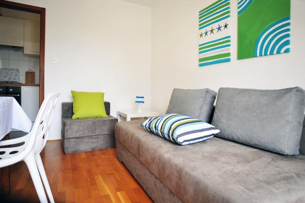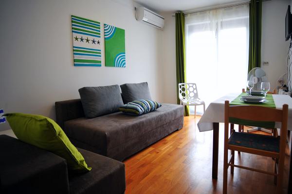 Lakossági adót az az ár tartalmazza.Az ár tartalmazza a welcome drink bor, pálinka, vagy valami hasonló a kérést. A lakás, a konyha só, cukor, bors, mosószer ételeket. A balkonon mindkét apartmanok élvezhetik az árnyékban és enni. A vendégek bérelhetnek babakocsival, kiságy, baba etetőszék (ingyenes), babahordozó. Minden kérésre. Légkondicionáló felár ellenében 3 EUR per nap használat esetén. Ingyenes internet-hozzáférés. Apartmanok bérelhetők hosszabb ideig. Ár forgatható. Különösen érdekes holtszezon (alacsonyabb árak) a vendégek, akik szeretnének nyaralni, vagy a vendégek, akik jönnek az üzleti ..