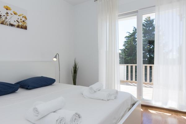 A ONE4ALL - COMFORT apartman Punatban található, egy családi ház 2. emeletén, parkosított kerttel és két parkolóhellyel. A ház 15 perc sétára található a faluközponttól és 5 percre az első strandtól. Az apartman 2 hálószobából áll franciaággyal (180*200), 1 hálószobából/dolgozószobából/gyerekeknek kialakított játszószobából kanapéággyal (140*200), 3 fürdőszobából, konyhából, étkezőből, nappaliból, 2 teraszból és egy erkélyből. Tágas és teljesen felszerelt apartman kellemes tartózkodást biztosít családjának és barátainak. Üdvözöljük!