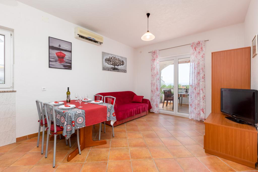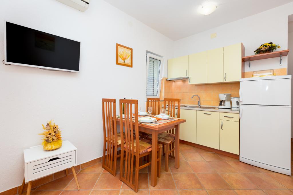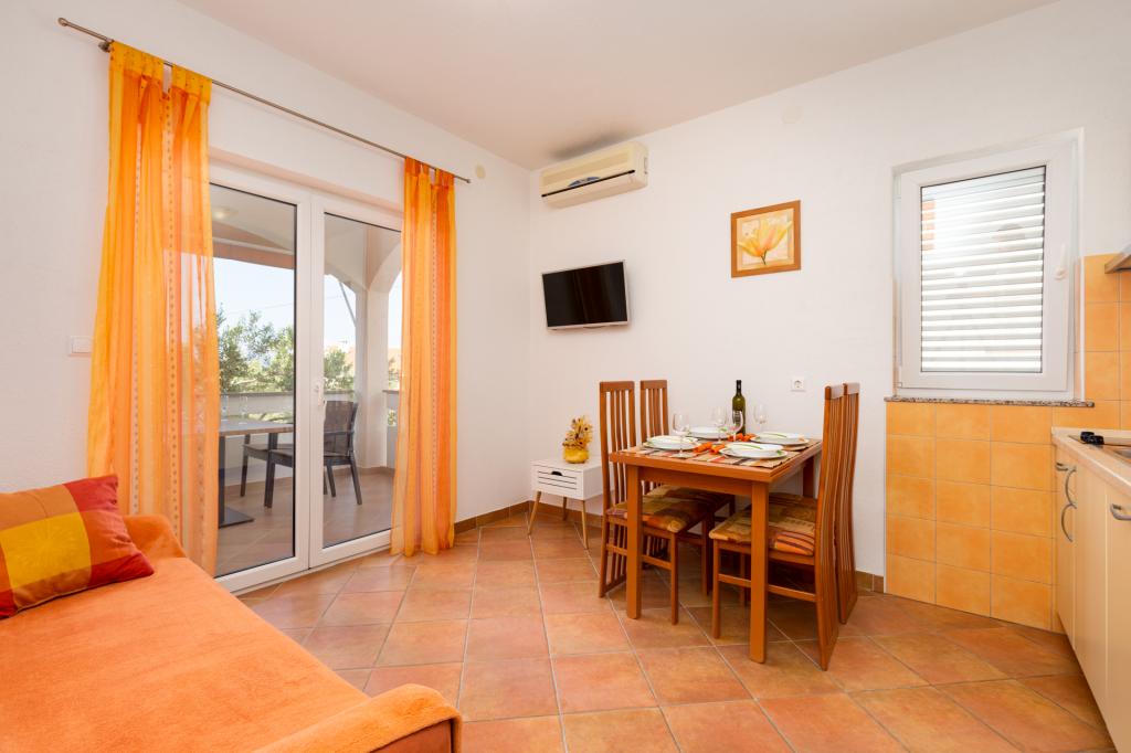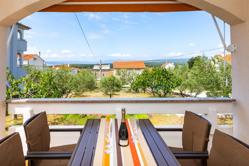 A kis tengerparti város Punat, a gyönyörű környezetben olajfák és fügefák, található a családi ház, két modern lakások, a földszinten. Minden apartman két külön hálószobával elhelyezésére négy személy, zuhanyzós fürdőszoba, konyha és nappali kanapéval két fő részére. A nappaliban van hozzáférése egy tágas fedett terasz asztallal és székekkel. Apartmanok felszereltsége: légkondicionáló, műholdas / TV, ágynemű, mosogatógép, fagyasztós hűtőszekrény, kávéfőző, edények és egyéb konyhai eszközök. Az autóban parkoló az udvaron. Üdvözöljük!