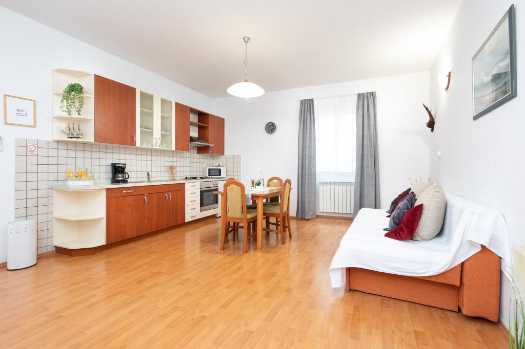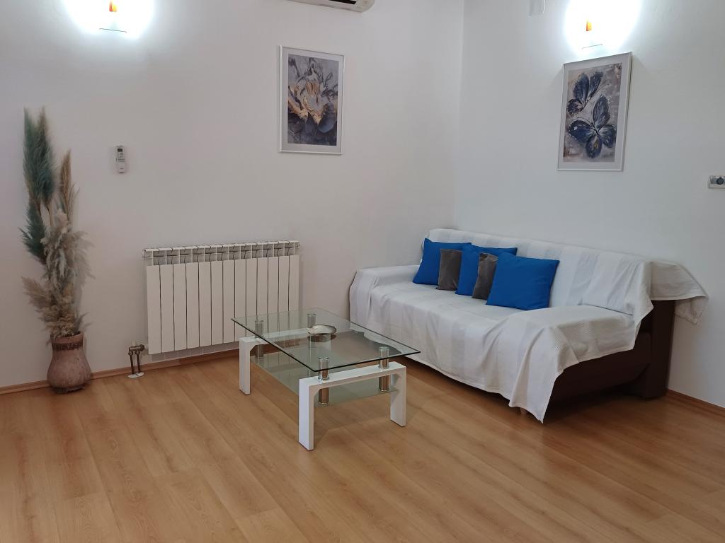 Egy hangulatos apartman Punat központjában - ideális a nyaraláshoz! Az apartman egy családi házban található Punat szívében, nagyszerű helyen, minden szükséges szolgáltatás közelében. Élvezze a pihenést a földszinti teraszon csendben és nyugalomban. Érkezéskor nem kell aggódnia, mert ágyneműt és törölközőket biztosítunk, a konyha teljesen felszerelt, beleértve a mosogatógépet, kenyérpirítót, vízforralót, filteres kávéfőzőt, egy nagy hűtőszekrényt mélyhűtővel és mosogatógépet. A légkondicionáló mellett az apartman központi fűtéssel is rendelkezik, így az év hidegebb hónapjaiban is nálunk szállhat meg. Ha hosszabb ideig marad, vasalót és vasalódeszkát is biztosítunk. Az apartman előtti udvarban parkolóhely található. Háziállatokat is fogadunk, felár ellenében. Jöjjön el, és töltsön el egy felejthetetlen nyaralást apartmanunkban.
