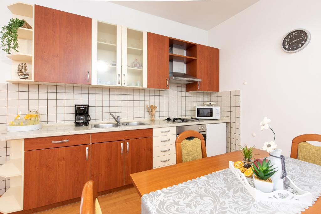 Lakossági adót az az ár tartalmazza.A házigazdák fogadják és kikísérik vendégeit. Saját motorcsónakkal érkező vendégek számára 150 méterre biztosítunk helyet a motorcsónaknak, valamint parkolóhelyet a motorcsónak utánfutójának. Az utánfutó parkolása ingyenes. Két perc sétára éttermek, cukrászdák, pizzériák, bárok, gyógyszertár, a kikötőkapitányság és üzletek találhatók. Érkezéskor üdvözlőital várja Önt az apartmanban. Mindig az Ön szolgálatában állunk. Elérhet minket a 38598361580-as mobilszámon, valamint Viberen és WhatsAppon.