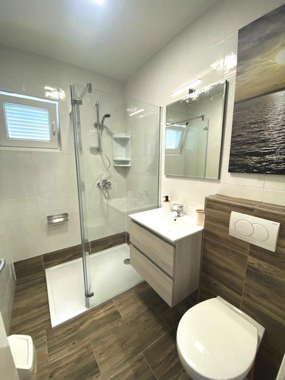 Az apartmanok 7 perc sétára találhatók a betonos strandtól és 9 perc sétára a kavicsos strandtól. A házban 3 gyönyörűen berendezett apartman található, amelyek mosogatógéppel, légkondicionálóval, internettel és műholdas TV-vel felszereltek. Minden apartmanhoz egy parkolóhely tartozik.
