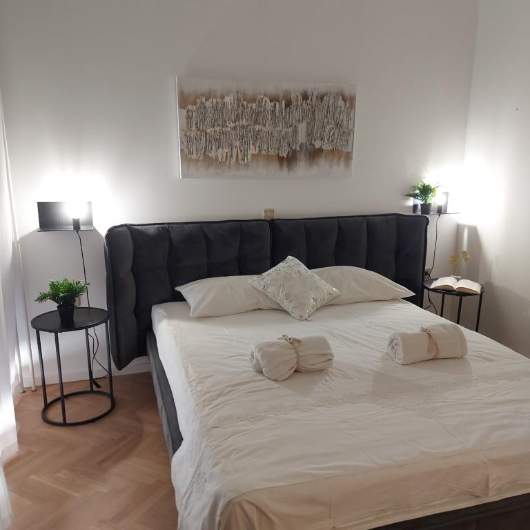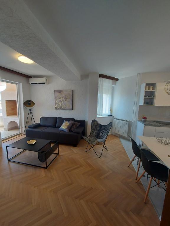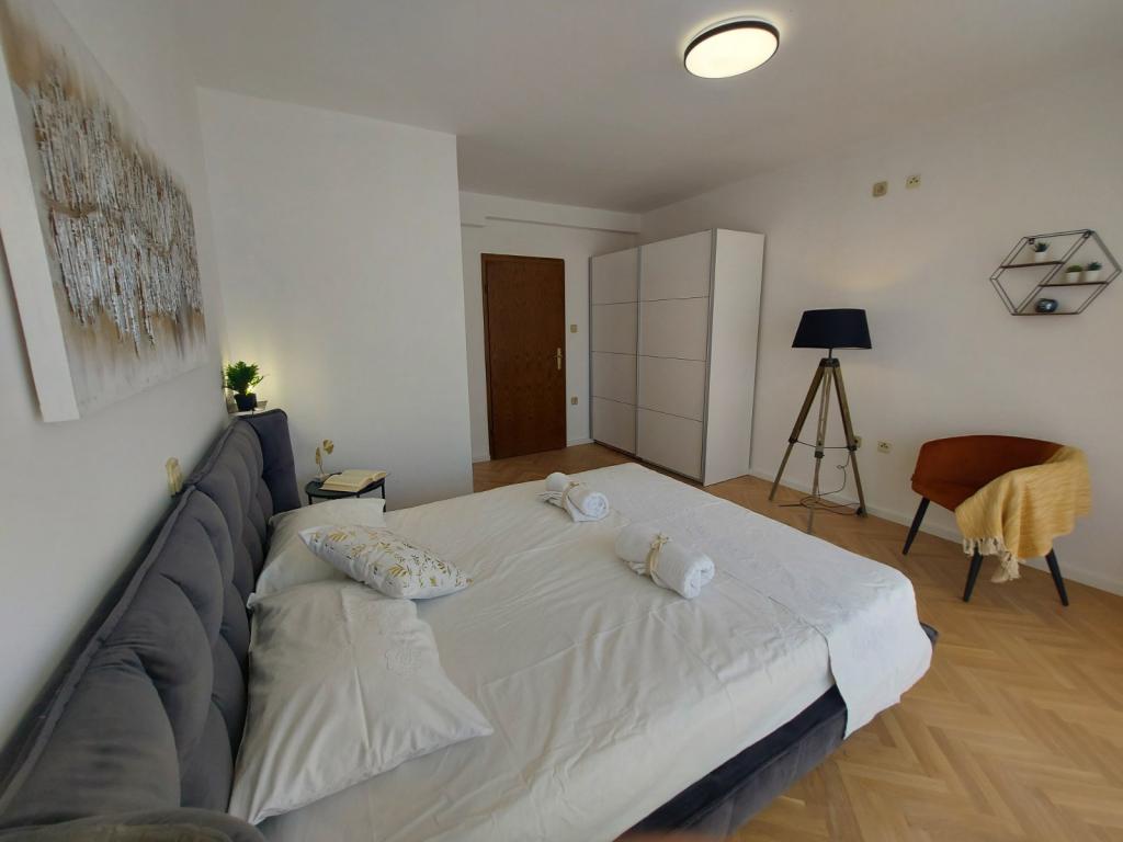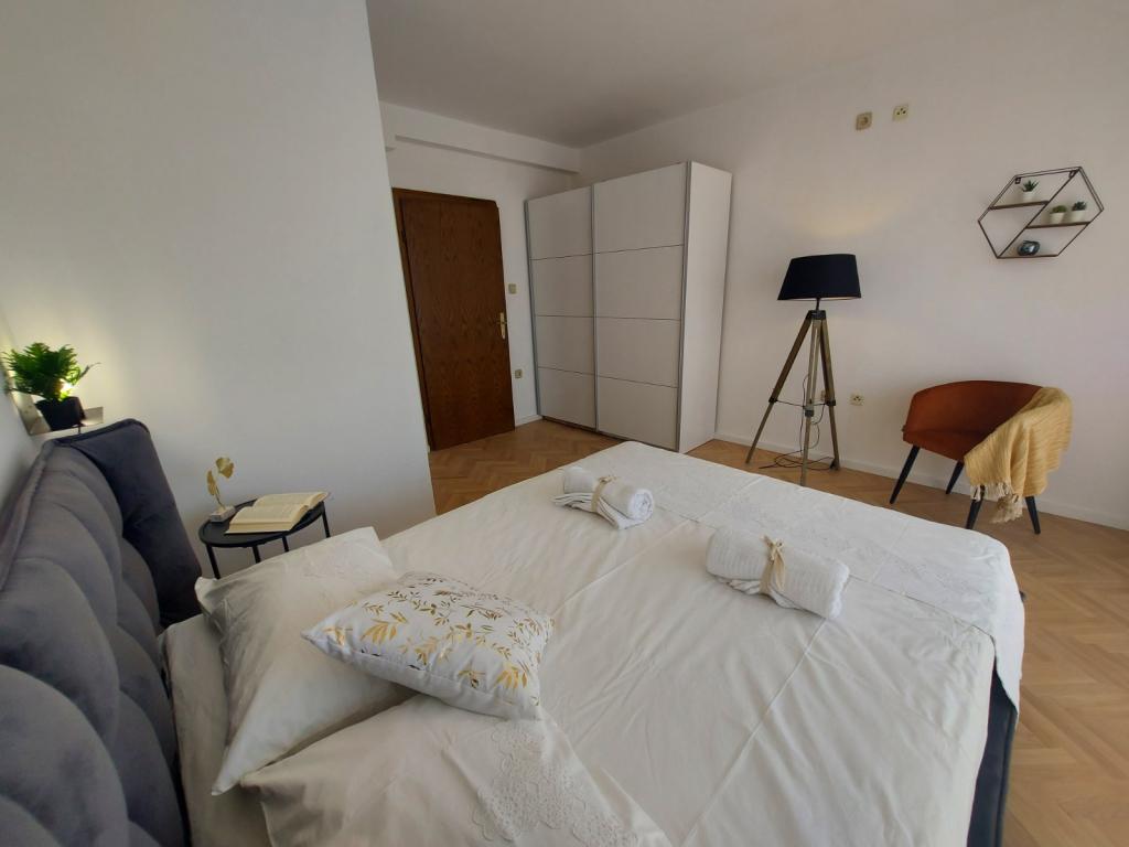 Apartmanjaink egy családi ház első emeletén találhatók. Az apartmanok újonnan berendezettek, modernek és funkcionálisan felszereltek (WI-FI, légkondicionálás, mosogatógép), kellemes és nyugodt tartózkodást biztosítanak. Ingyenes zárt parkolási lehetőség biztosított a ház udvarán. Az udvaron van egy pavilon grillezővel, ahol az árnyékot élvezheti. Az alapvető szolgáltatások, például strandok, éttermek és üzletek gyalogosan is elérhetők.