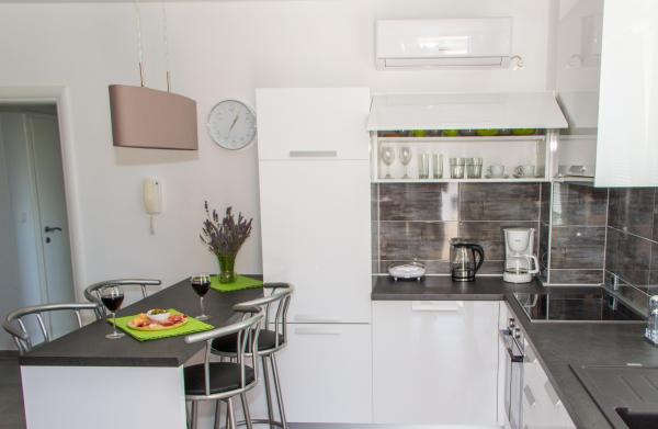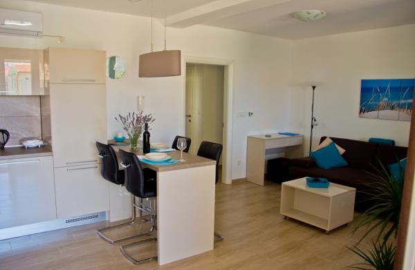 Žorić apartmanok – Kényelmes és nyugodt szállás Punat szívében A Punat központjában található Žorić apartmanok a kényelem, a praktikus elhelyezkedés és a mediterrán báj tökéletes kombinációját kínálják. Egy családi ház földszintjén helyezkednek el, mindössze 10 perc sétára a strandtól és a Punat kikötője közelében. Apartmanjaink modernek és funkcionálisan felszereltek, ideálisak egy kellemes és pihentető tartózkodáshoz: Ingyenes Wi-Fi, légkondicionáló és központi fűtés Teljesen felszerelt konyha mosogatógéppel, sütővel és tűzhellyel ️ Hálószoba mennyezeti ventilátorral ️ Síkképernyős TV műholdas csatornákkal ️ Ingyenes parkolás Minden, amire szüksége van egy gondtalan nyaraláshoz, a közelben található – strandok, éttermek és üzletek mindössze néhány perc sétára találhatók. Az apartmanok kisgyermekes családok számára alkalmasak, és háziállatokat is szívesen látunk – ideális hely egy nyugodt családi nyaraláshoz. Jöjjön el, és élvezze apartmanjaink meleg, otthonos hangulatát és kényelmét – az Apartmanok Žorić a megfelelő hely a punati nyaralásához!