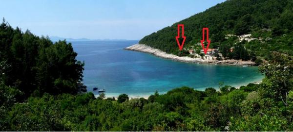 Ha keres a lakások, ahol kipihenheti a napi stressz, távol a nyüzsgéstől, ezek a lakások a helyes választás az Ön számára. Az apartmanok találhatók Pupnatska port, a legszebb öböl a sziget Korcula található, 17 km-re a város Korcula. Apartman 1. (A nyíl által jelzett közelebb a strand) két hálószoba (franciaágy), felszerelt konyha, nappali, fürdőszoba (WC és zuhanyzó), és egy kandalló. A terasz, fedett szőlővel, kilátással a strandra és az öbölre. A lakás egy szabadtéri grill. A lakás egy hűtőszekrény és gáztűzhely. A lakás napenergia. Távolság mindössze 7 m-re a tengertől. Apartman 2 (nyíl balra a képen) két hálószoba (franciaágy), felszerelt konyha kanapéval, és egy fürdőszoba (WC és zuhanyzó). Elöl egy nagy terasz nyílik a strand és Lastovo. Meg van egy szabadtéri grill. Kiváló helyszín: 7 m-re a tengertől, elkülönítve a többi lehetőség. Ideális azok számára, akik a magánélet. A lakás napenergia.
