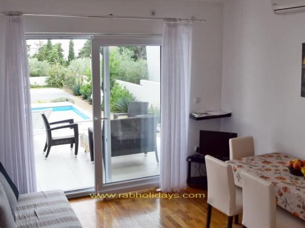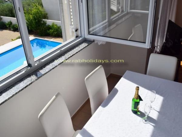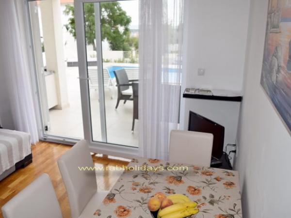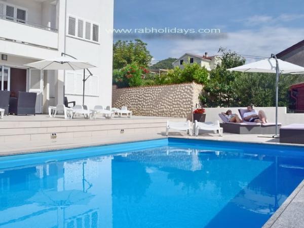 House \\ Villa Marija \\ tágas apartmanok választéka található Rab szigetén Banjolban. A villa Marija apartmanjai egy csendes, gyönyörű helyen találhatók, a strandtól 500 méterre. Várja Önt kényelmes szállást modern berendezésű apartmanokban (légkondicionáló, műholdas TV, grillező, terasz nyugágyakkal, tengerre néző, parkoló). Az apartmanon belül van egy úszómedence is. Őszintén reméljük, hogy felismeri Rab szigetének szépségét, és eltöltheti gyönyörű és kellemes nyaralását Banjolban, és megtiszteltetés leszünk a házigazdáktól.