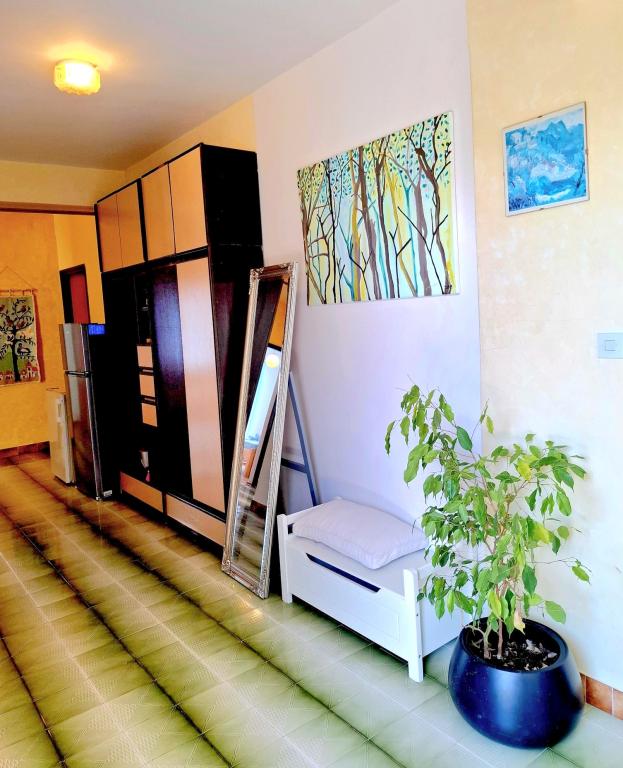 Kényelmes és tágas szobákat kínálunk közvetlenül a tengerparton, ideálisak azoknak az utazóknak, akik megfizethető (alacsony költségű) szállást keresnek kiváló helyen. Minden szobához saját fürdőszoba és erkély, kényelmes ágyak és állóventilátor tartozik a kényelmesebb tartózkodás érdekében. A Sárga szobában van hely egy babaágynak (ingyenes) és egy pótágynak (felár ellenében), így családi szobaként is funkcionálhat. A vendégek ingyenes parkolást, nagy teraszt és egy jól felszerelt közös sarkot kapnak, ahol a tágas előcsarnokban elkészíthetik reggelijüket. (Konyha nincs). Különleges előnyünk az olajfák árnyékában elterülő kertünk nyugágyakkal és asztalokkal - tökéletes hely a kikapcsolódásra, gyors Wi-Fi-vel minden vendég számára. TV és légkondicionáló nélkül a hangsúly az igazi nyári nyaraláson van. A strandoktól, a sétánytól és a tengerparti bároktól pár lépésre találhatóak vagyunk, így tökéletes kiindulópontot biztosítunk egy aktív nyaraláshoz megfizethető áron. Rab városától mindössze 15 perc sétára találhatóak vagyunk.