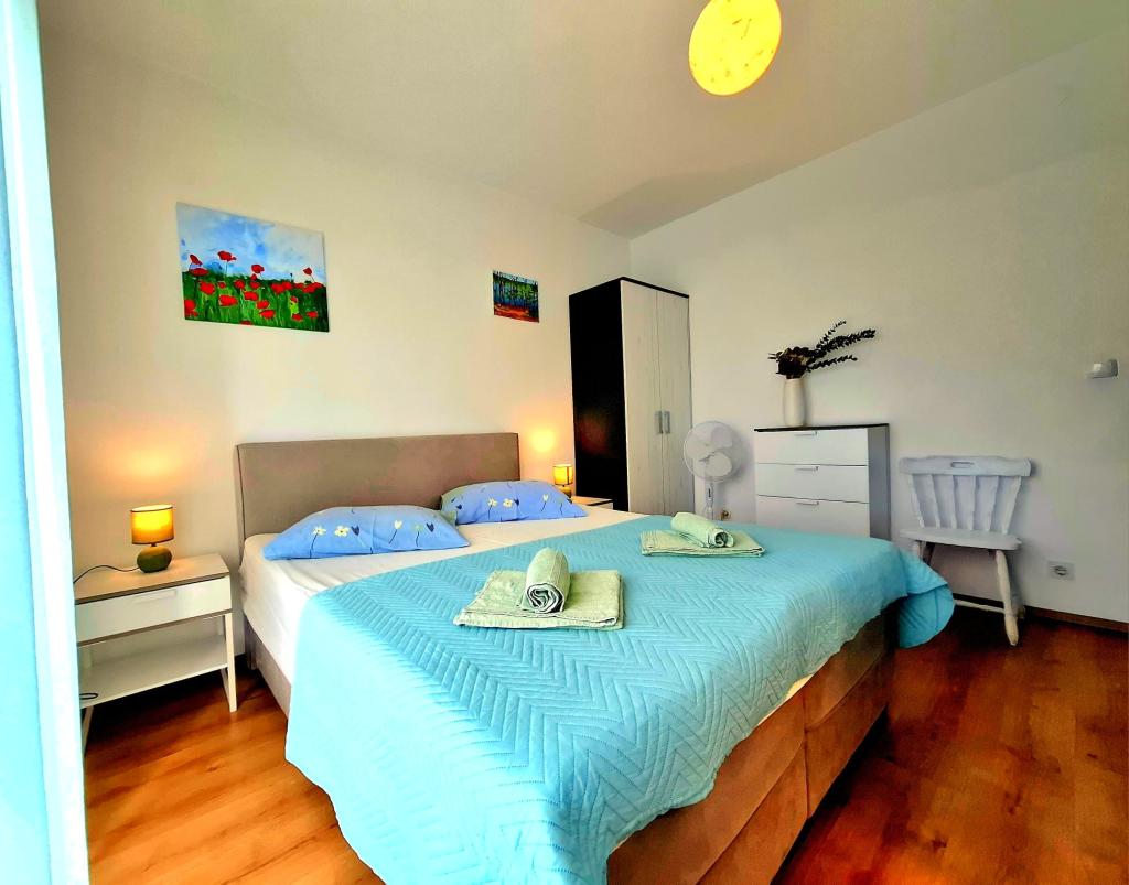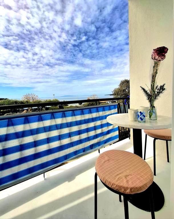„Olyan nyaralásra vágyik, mint régen – a hullámok morajlásával a tévé zaja helyett? Banjolban, a tengertől első sorban található szállásunk pontosan ezt kínálja Önnek: visszatérést a természethez és igazi nyugalmat. Közvetlenül a Lungo Mare sétányon találhatóak, 20 perces könnyű sétára Rab városától. Légkondicionáló helyett a tengeri levegő frissességét, képernyő helyett pedig az öböl legszebb kilátását kínáljuk saját erkélyéről. Mit kínálunk? Tökéletes elhelyezkedés: Első sorban a tengertől, közvetlenül a sétaút vagy a reggeli kocogás mellett. Élvezze az egyszerűséget, a só illatát és az óváros közelségét.” Nyaralás, mint a múltban: Nincs tévé és mesterséges hűtés: padlóventilátor és tengeri levegő. De továbbra is jó internetkapcsolat; ingyenes WIFI. Közös, jól felszerelt sarok a reggeli önálló elkészítéséhez: hűtőszekrény, kávéfőző, vízforraló, kenyérpirító, mikrohullámú sütő, poharak, tányérok és evőeszközök.