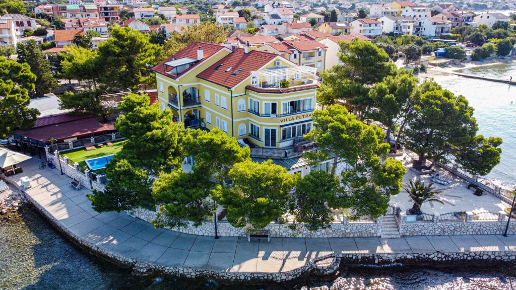 Rab szigetén, Banjolban van egy kis félsziget Petrac, ahol a mi villánk található. A Villa Petrac egy újonnan épült, családias hangulatú villa. A villában 13 fényűzően felszerelt apartman található. Minden apartman gyönyörű kilátást nyújt a tengerre, 50 parkolóhely terasszal a tengerre, hullámok hangjával, pálmafák és fenyők természetes árnyékában. A Villa "Petrac" teraszáról elbűvölő kilátás nyílik a Dolina (könnyek szigete), Školja (a boldogság szigete), Frkanja (a szerelem szigete) és a Galofarin (elválasztó zátony) szigeteinek lámpásaira. évezredes Municipio Arba Barbat csatorna, ahonnan hajók és jachtok lépnek be Rab kikötőjébe. A villa mellett egy öböllel és stranddal rendelkező sétány található, amely egészen Rab városáig vezet. Mindez látogatóink közvetlen közelében - igazi kihívás a turisztikai kamerák számára. A Villa Petrac személyzete kellemes tartózkodást és sok szerencsét kíván.