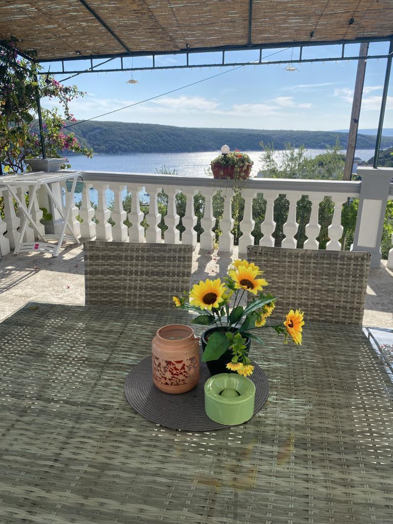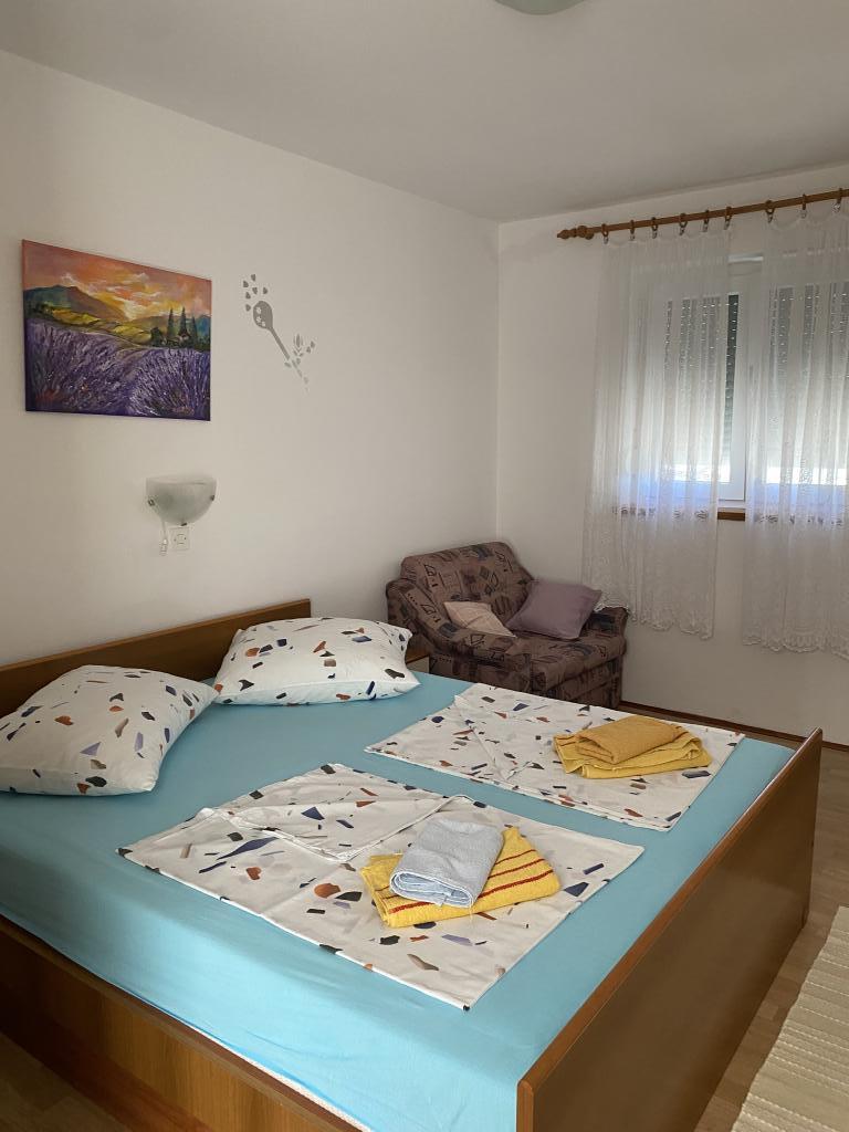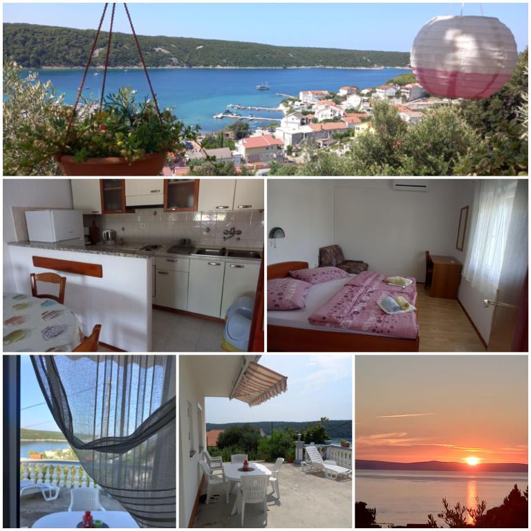 4 fős apartman, kb. 300 méterre a tengertől és a strandtól. Kissé dombon, kilátással a tengerre, csend és nyugalom, terasz, parkoló, grillező, wifi, TV, mosógép, légkondicionáló, kikötőhely maximum 7 méteres hajó számára.