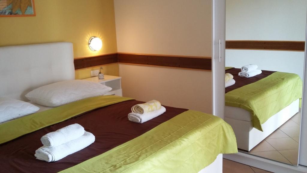 A Zlata apartmanok Rab város közvetlen közelében, a Palit nevű sziget csendes részén, vonzó helyen, a Komrčar városi park alatt, a városi strand közvetlen közelében találhatók. Innen taxihajókkal eljuthat a Frkanja-félszigetre, ahol számos gyönyörű és meghitt mediterrán strand és öböl található, ezért is nevezik a "Szerelem szigetének". A tengerparti sétányon 10 perc alatt elérhető az óváros, valamint az új városrész. Több mint 30 éves tapasztalattal rendelkezünk apartmanbérlésben. Minden turistát szeretettel várunk. A ház nagy része a tulajdonos saját kezű munkája, aki különös figyelmet fordított a kőrészletekre (a ház külső falai, kút stb.). A kert zöldövezetére néző nagy teraszok is különlegesek. A ház udvarán zárható parkoló található.