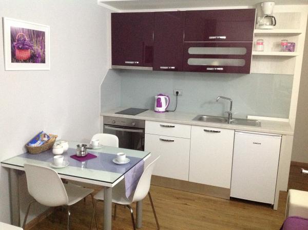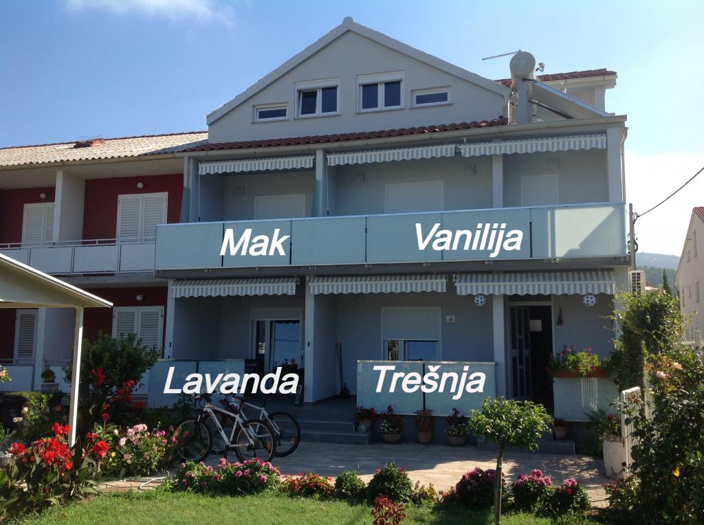 A Mak, Vanilija, Lavanda és Trešnja apartmanok egy teljesen felújított modern házban találhatók. Új bútorokkal van felszerelve. Az ingatlan az első sorban található a tenger felé. Minden apartman saját teraszáról a tengerre nyílik kilátás. Rab város Palit negyede, ahol a létesítmény található, csendes, a Škver városi strand közvetlen közelében. 10 perc alatt elérhető a városi sétányon vagy a városi parkon átvezető ösvényeken keresztül. az óvárosba, ugyanakkor gyalogosan is elérhető az új városrész. Skveréből hajókirándulás lehetséges a közeli Frkanj-félszigetre, amely gyönyörű strandokkal rendelkezik.