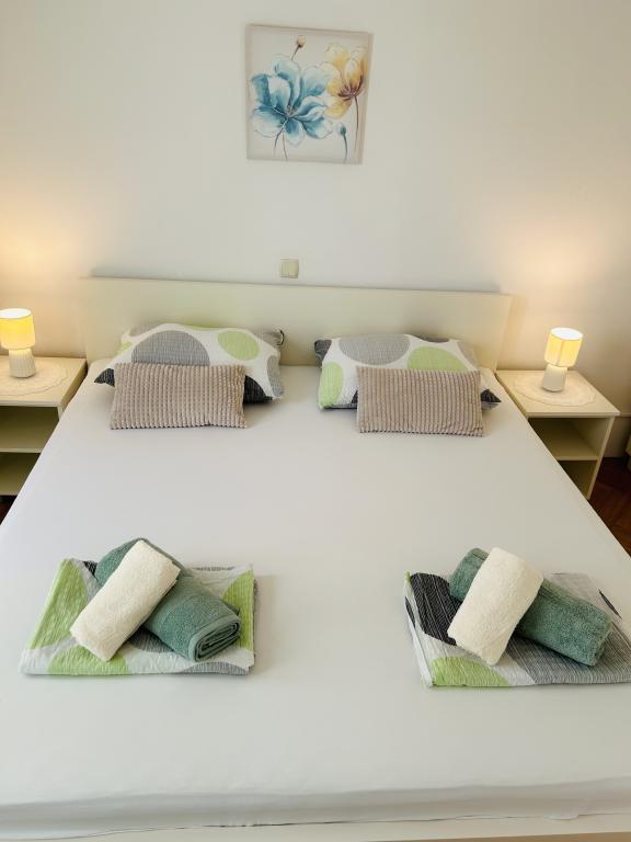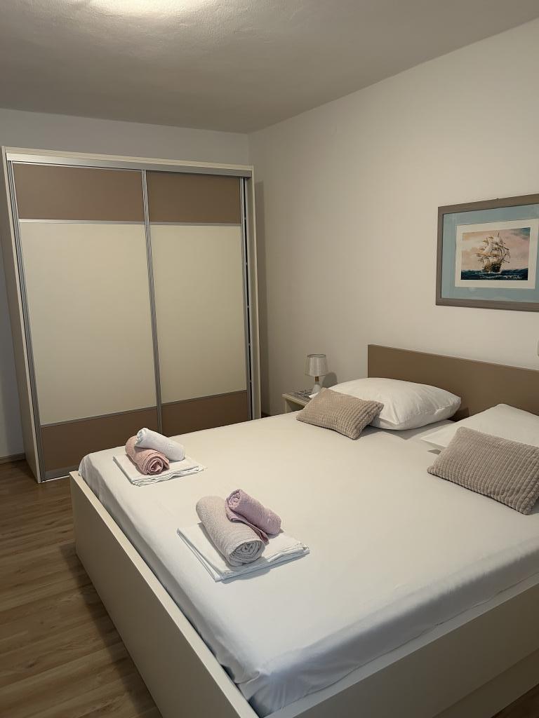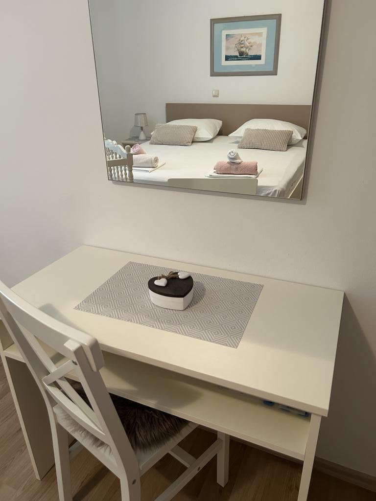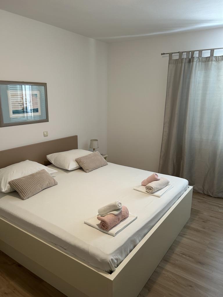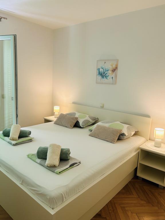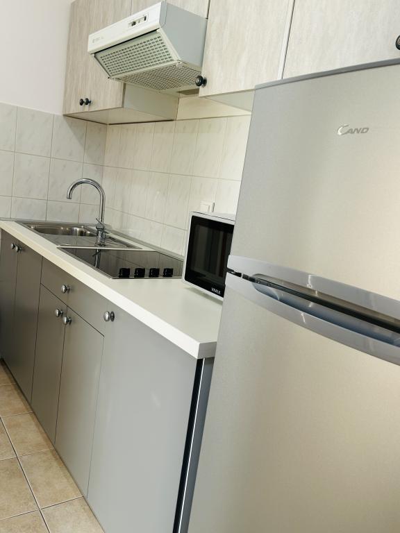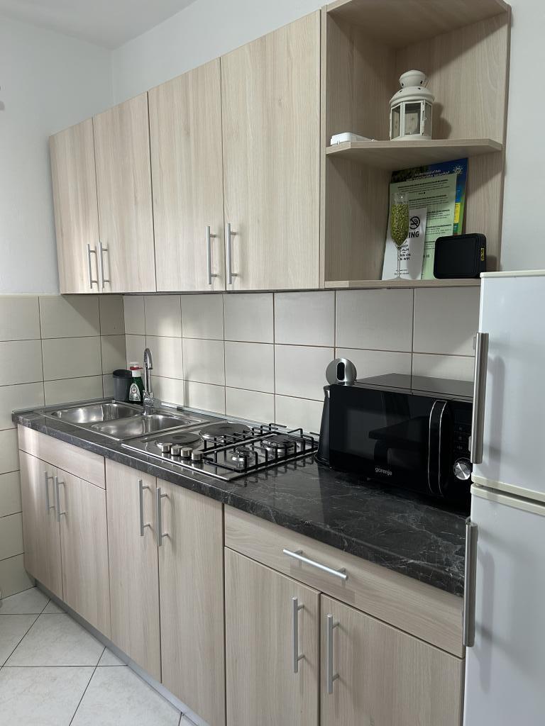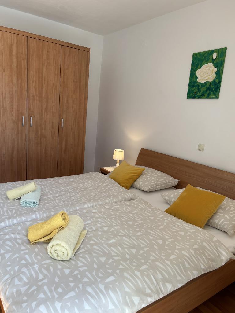 Korszerűen felszerelt apartmanok csendes környezetben. Az apartmanok a földszinten és az első emeleten találhatók. Tartalmaz egy nappalit, egy franciaággyal felszerelt szobákat, egy konyhát minden szükséges kiegészítővel, egy fürdőszobát és egy erkélyt, valamint ingyenes Wi-Fi-t. A létesítmény területén ingyenes parkolási lehetőség, grillezési lehetőség biztosított. Élelmiszerbolt, kávézó és fodrászat 300 méterre található az épülettől, és egyéb létesítmények, mint például étterem, ambuláns, gyógyszertár stb., 5 perc alatt elérhető autóval. A legközelebbi kavicsos strand 700 méterre található, és ha mégis úgy dönt, hogy felfedez egy kicsit, a Frkanj-félsziget, amely tele van öblekkel és strandokkal, 5 perces autóútra található. Rab óvárosa 20 perces könnyű séta a tenger mentén vagy 5 perc autóval.