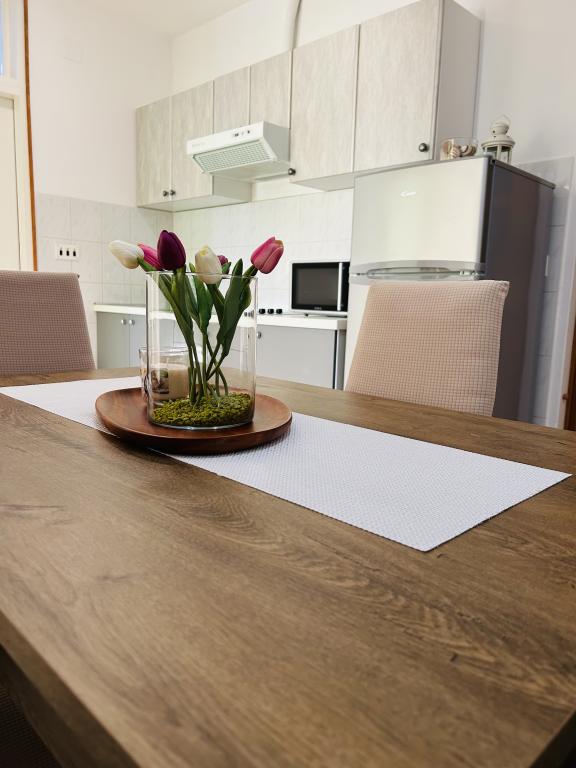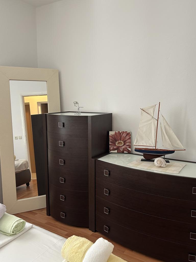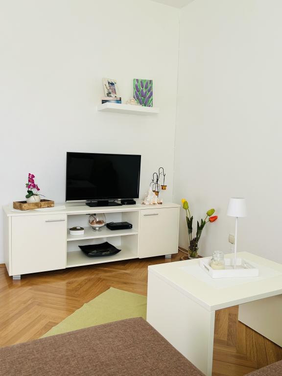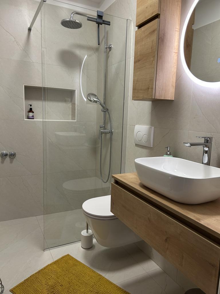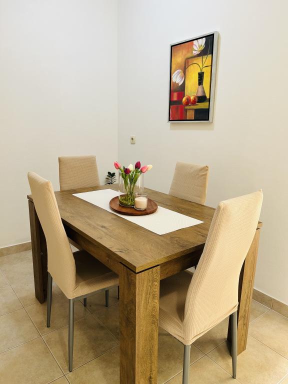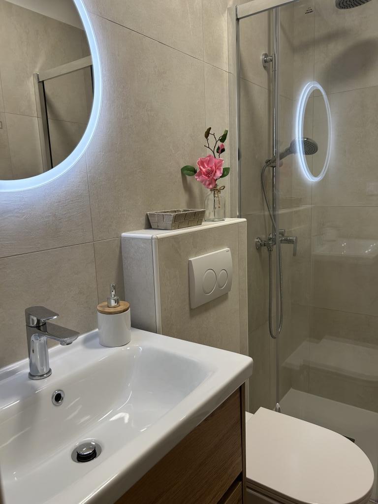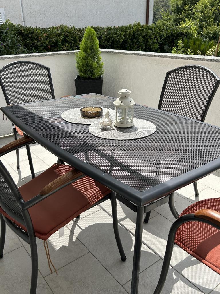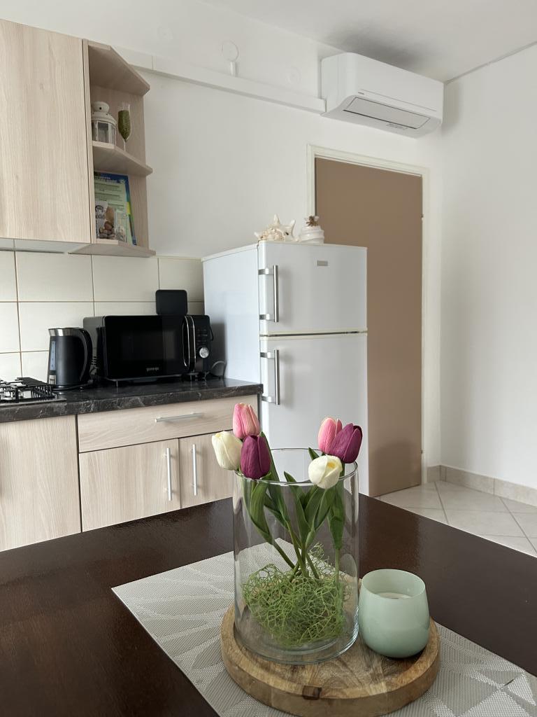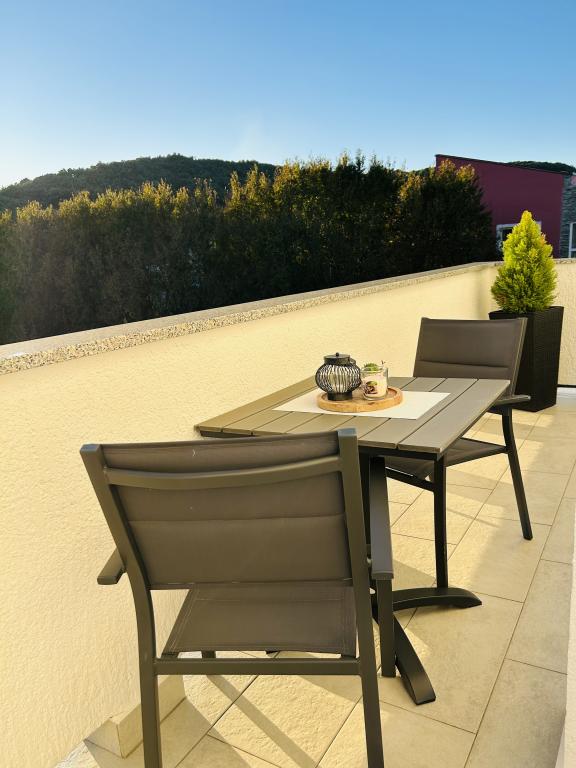 Korszerűen felszerelt apartmanok csendes környezetben. Az apartmanok a földszinten és az első emeleten találhatók. Tartalmaz egy nappalit, egy franciaággyal felszerelt szobákat, egy konyhát minden szükséges kiegészítővel, egy fürdőszobát és egy erkélyt, valamint ingyenes Wi-Fi-t. A létesítmény területén ingyenes parkolási lehetőség, grillezési lehetőség biztosított. Élelmiszerbolt, kávézó és fodrászat 300 méterre található az épülettől, és egyéb létesítmények, mint például étterem, ambuláns, gyógyszertár stb., 5 perc alatt elérhető autóval. A legközelebbi kavicsos strand 700 méterre található, és ha mégis úgy dönt, hogy felfedez egy kicsit, a Frkanj-félsziget, amely tele van öblekkel és strandokkal, 5 perces autóútra található. Rab óvárosa 20 perces könnyű séta a tenger mentén vagy 5 perc autóval.
