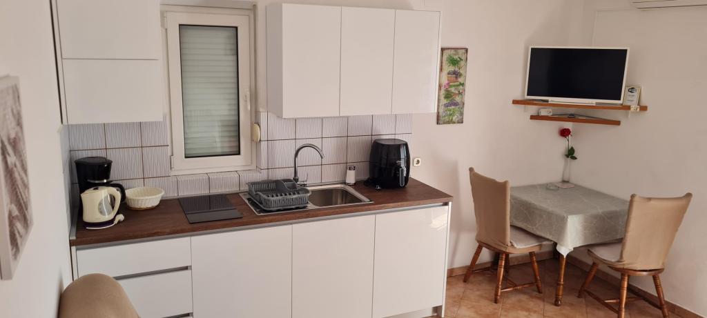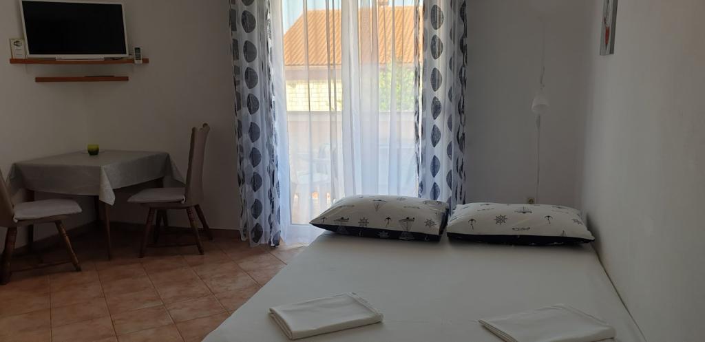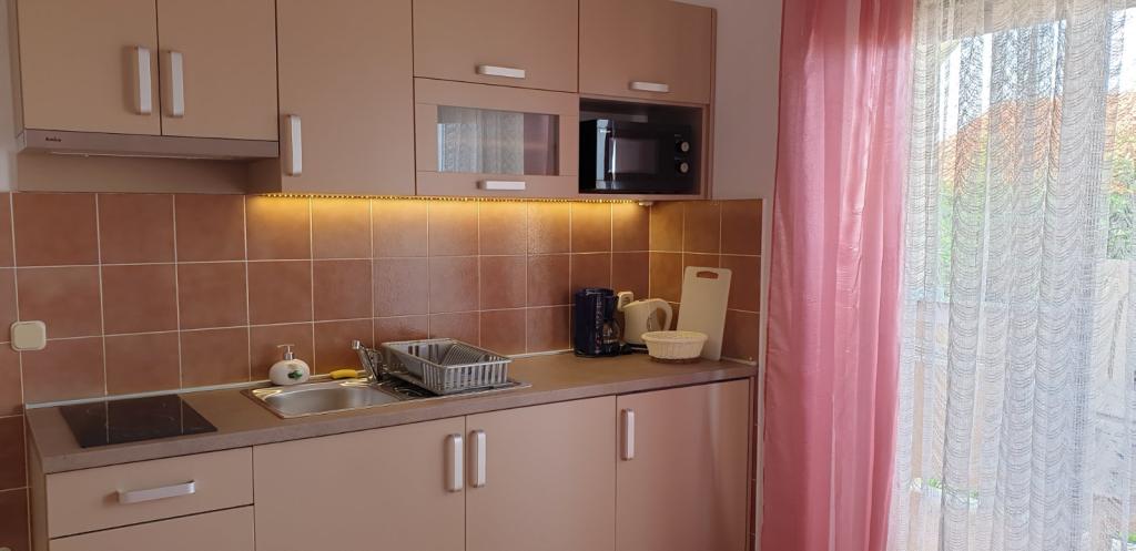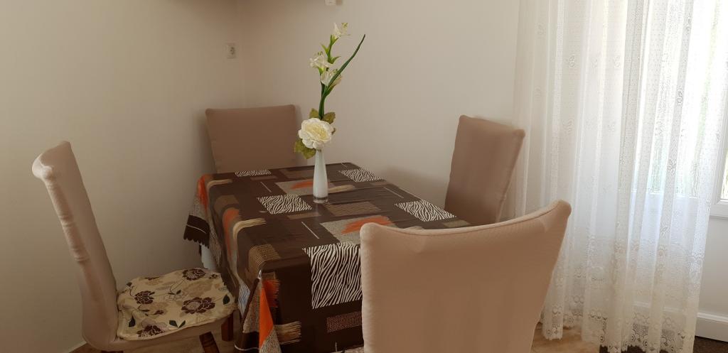 Teljesen felszerelt apartmanjaink csendes helyen találhatók, mindössze 5 perc sétára a központtól és 10 perc sétára a strandtól. Minden apartmanban két felnőtt és egy vagy két gyermek szállásolható el. A földszinti lakáshoz terasz, az emeleti apartmanokhoz kertre néző erkély tartozik. Saját parkoló az udvarban található.