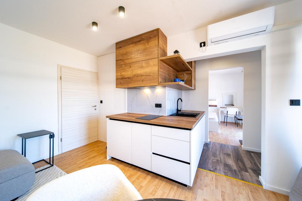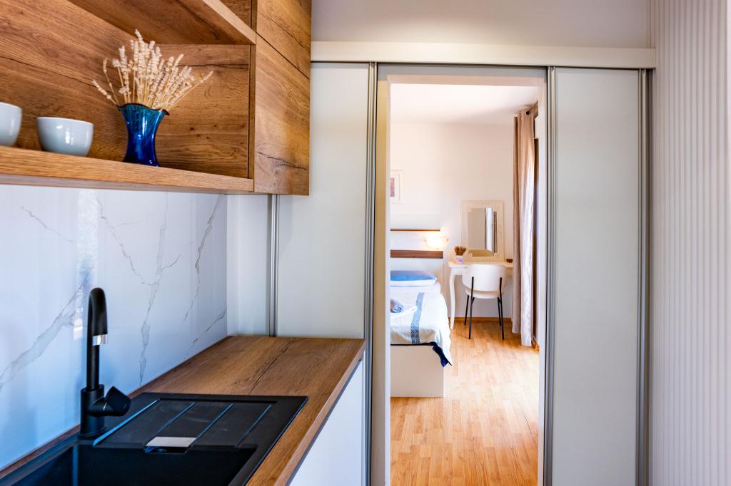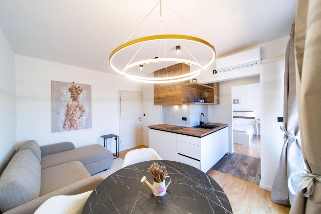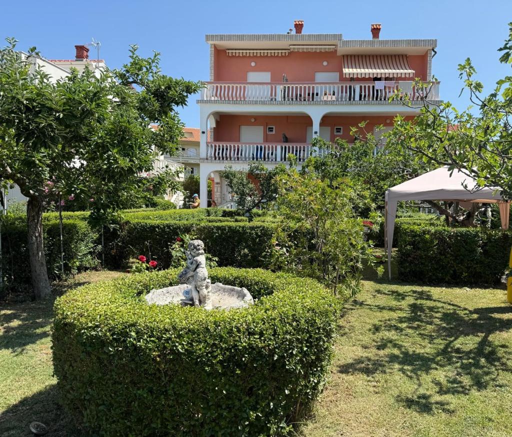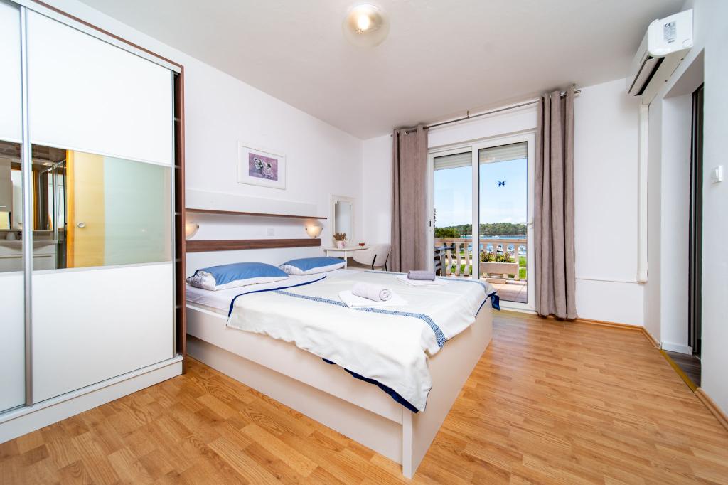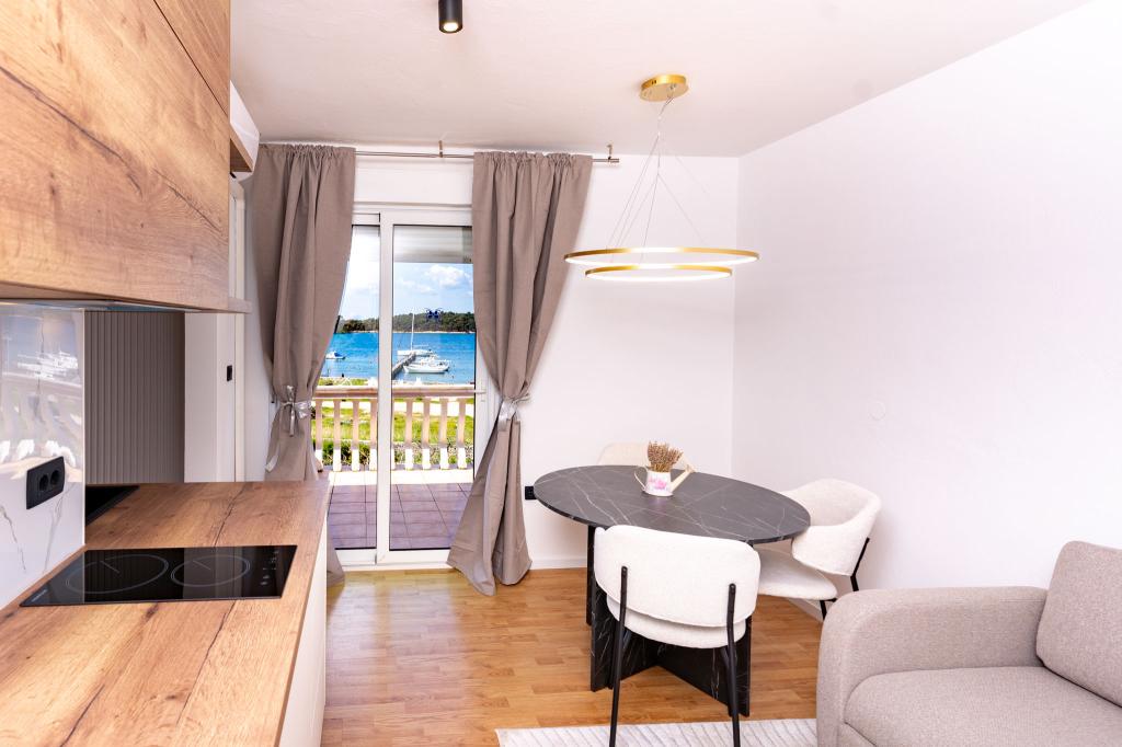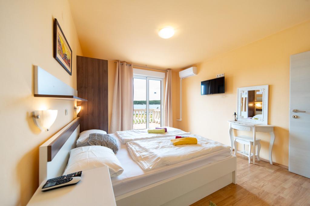 A létesítmény Rab szigetének, Palit városának egy csendes részén található. Mivel a tengertől az első sorban található, minden luxus és teljesen felszerelt egység gyönyörű kilátást nyújt a tengerre és a tengerre. a romantikus Frkanj-öböl, ahol varázslatos napfelkeltét és naplementét élvezhet. A ház mindössze 50 méterre található a strandtól és 150 méterre Rab központjától, amely egy kellemes sétával elérhető a tengerparti sétányon. Éttermek is találhatók néhány perc sétára az épülettől. Az épületet egy gyönyörű kert és egy kert is díszíti, ahol a tenger mellett elhaladva élvezheti a mediterrán illatokat.
