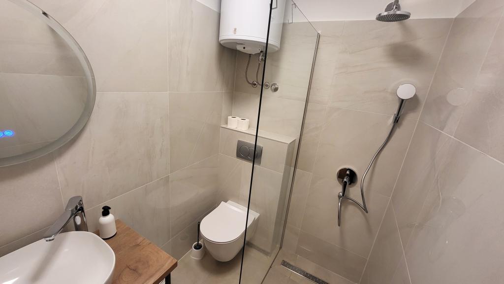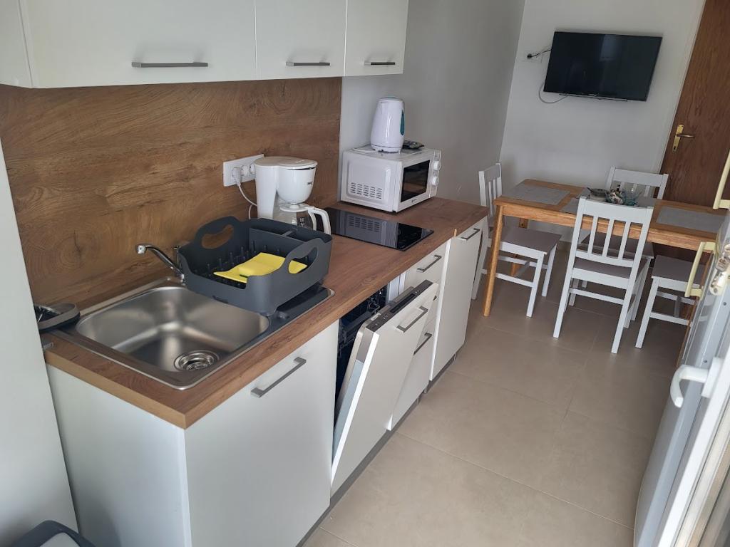 Nagyon csendes és kényelmes szállás. A tulajdonos nagyon kedves és segítőkész hölgy. A lakás tiszta, szépen berendezett, teljesen felszerelt. Rövid sétára van a strandtól, így fürdőruhában egyenesen oda lehet menni. A bolt kb 5-10 perc sétára van, közvetlenül a lakás alatt két étterem található, az egyik megfizethető áron, a másik luxus. A parkolás egy kicsit bonyolultabb, de nem szörnyű. Szívesen visszatérnénk még ide.