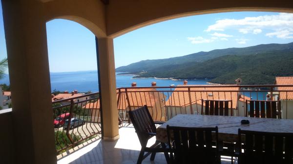 A szállásadó házaspár nagyon kedves, segítőkész, friss süteménnyel és hideg üdítővel vártak minket a megérkezéskor. A szállás tökéletes, a hatalmas teraszról gyönyörű kilátás nyílik a tengerre. A konyha kellően felszerelt, a külön szobák megadták mindenkinek az intimitást. Ár-érték arányban a szállás nagyon kedvező, egyedüli hátulütője a hegyoldali meredek hosszú séta. Fehér sziklás, égszínkék tiszta vízű tengeröblökben élveztük a fürdőzést. A közeli strandokat félig autóval, félig gyalogosan lehet megközelíteni, kb. 20-25 perc alatt. Nagyobb szupermarketek a szomszéd településen vannak, kisebb boltok Rabacban is találhatók. A part menti sétálóutcában nagyon jó éttermek, fagyizók, kis üzletek vannak. Ajánljuk aktív családoknak, baráti társaságoknak. Szívesen visszatérnénk.
