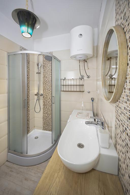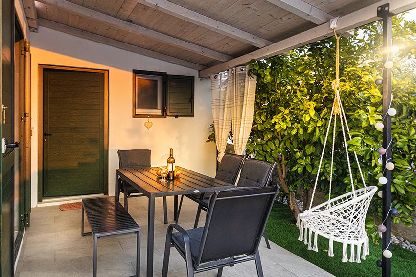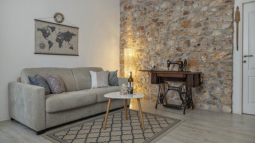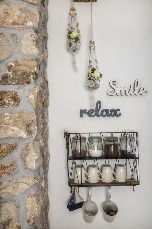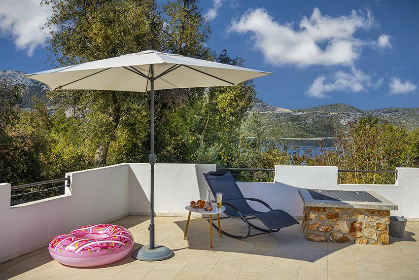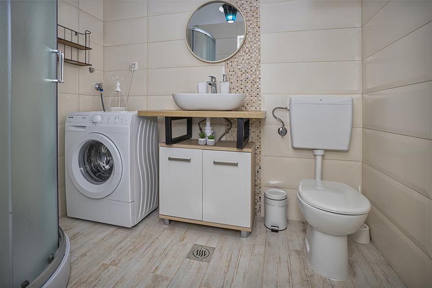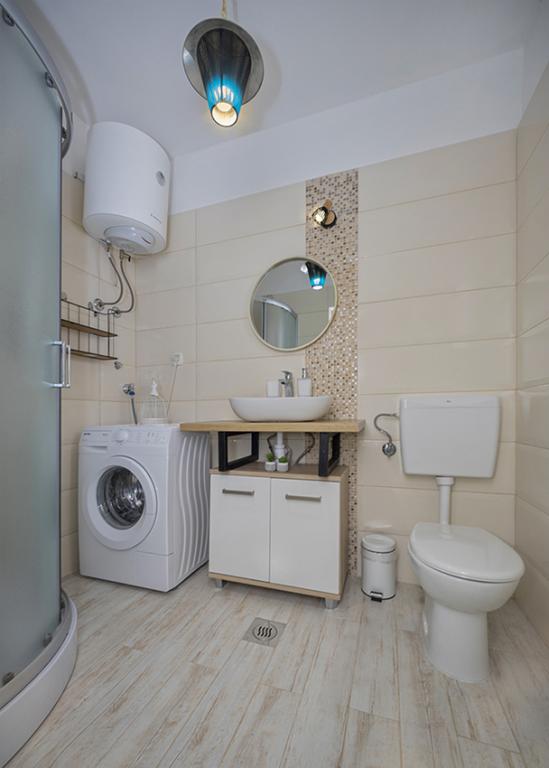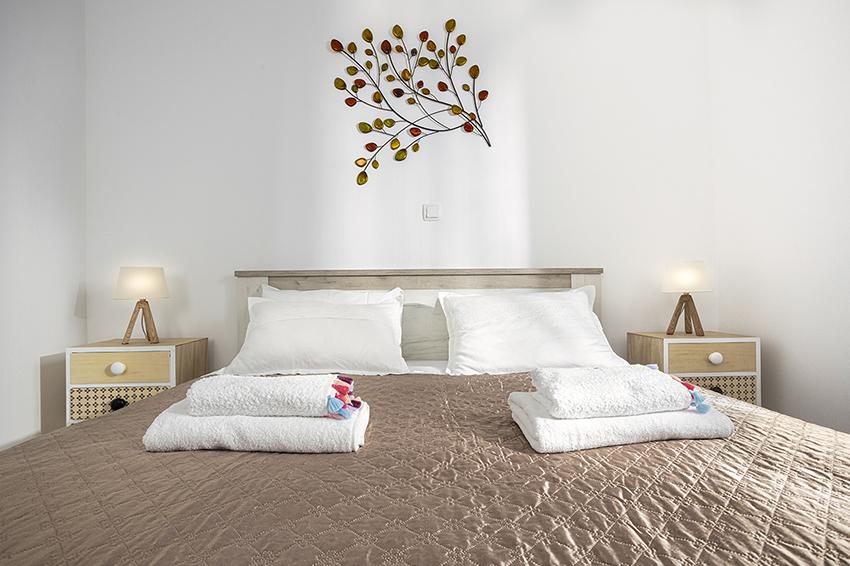 Az apartman a falu régebbi részén, egy félreeső helyen található a domb tetején (75 m-től 82 m-ig tengerszint felett), így élvezni fogja a békét és a csendet. 100 m-re van a legközelebbi strandtól, gyalogosan a régi úton vagy gyalog, illetve az új úton autóval is megközelíthető. A konyha korszerűen felszerelt és használható hűtő fagyasztóval, sütő, mosogatógép, kávéfőző, kenyérpirító, vízforraló, mikrohullámú sütő. Az épületben klíma és padlófűtés van. A fürdőszoba mosógéppel felszerelt. A lakás két szobás. Az egyikben egy franciaágy, a másikban pedig két összetolható egyszemélyes ágy található. A tágas teraszon is élvezheti a szabadidőt.